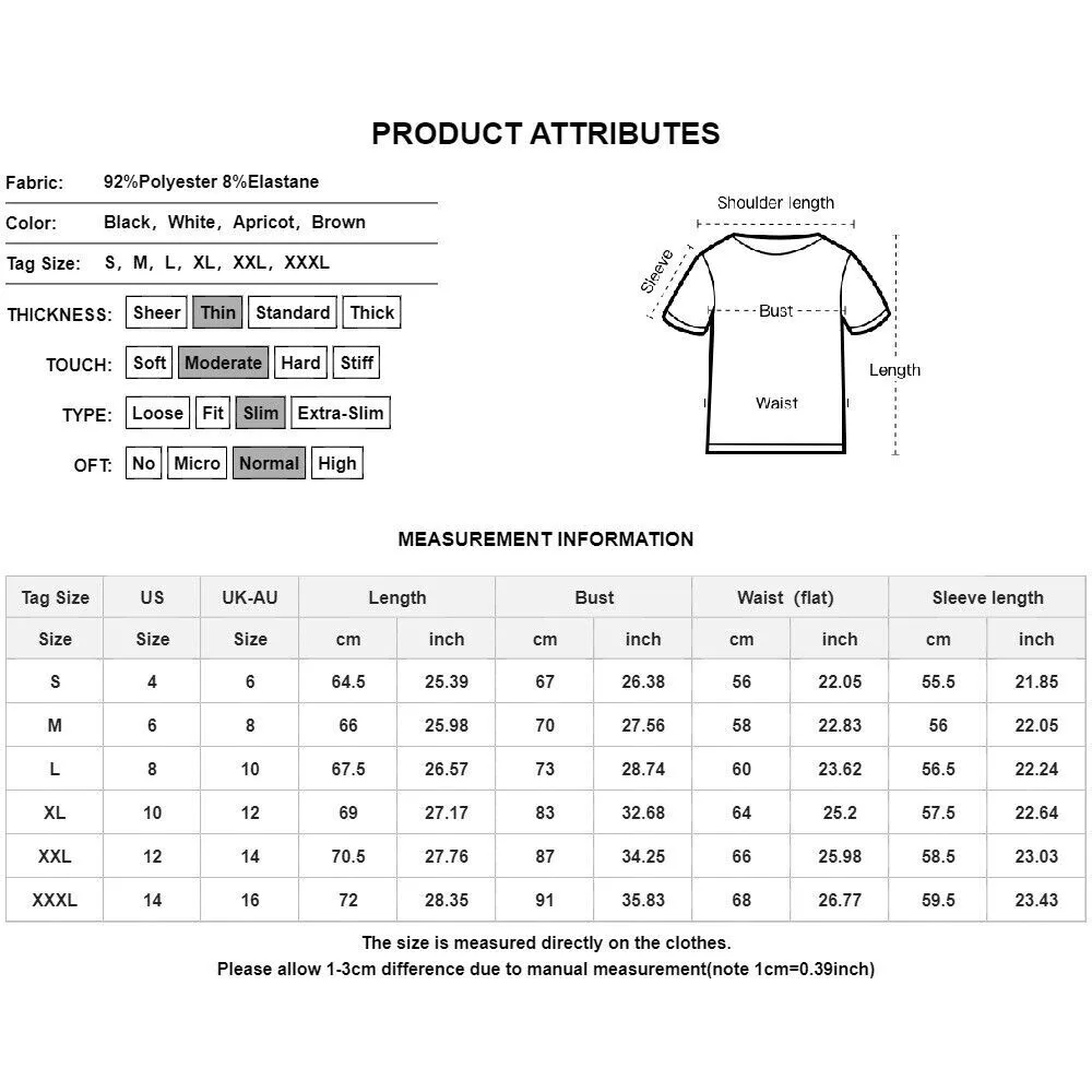 You may also like Women Winter Long Sleeve Solid Casual V Neck Sweaters Ladies Thermal Warm Blouse 25.64 USD 26.99 USD Free shipping 5% off Womens Ladies Long Sleeve Striped Knitted Blouse Tops Casual Loose Shirts Blouse 36.09 USD 37.99 USD Free shipping 5% off Womens Cable Knit Cardigan Jumper Sweater Oversized Pockets Buttons Coat Outwear 41.79 USD 43.99 USD Free shipping 5% off Womens Hooded Knit Sweater Winter Warm Hoodies Coat Long Cardigan Tops Jacket US 41.6 USD 43.79 USD Free shipping 5% off Womens Christmas Knitted Sweater Long Sleeve Xmas Party Fancy Tops Jumper Blouse 35.24 USD 37.09 USD Free shipping 5% off Womens Chunky Knitted V Neck Sweater Jumper Tops Winter Casual Solid Pullover US 36.09 USD 37.99 USD Free shipping 5% off Christmas Women Half High Neck Print Party T-Shirt Tops Sweater Casual Blouse US 37.42 USD 39.39 USD Free shipping 5% off Women Ladies High Polo Roll Neck Long Sleeve Ribbed Knitted Jumper Sweater Tops 37.99 USD 39.99 USD Free shipping 5% off Description: Product Features: Sleeve Length:Wrist Sleeve Type:Regular Neckline:Square Neck Material:Spandex Fabric Type:Knit Pattern:Solid Closure:Pullover Occasion:Back To The Basics Accents:Buckle Season:Winter Department:Women Size Type:Regular Collar Style:Square Collar Theme:Classic Style:Basic Fit:Slim Features:Buckle Package Content: 1 x Bodysuit About This Item(We aim to show you accurate product information) 1.The Real Object May Exist Slightly Colors Differences Compared To Images As Different Computers Display.Caution If Minding,Thanks. 2.There Might Be A Manual Measuring 1-3 cm Error.Sorry For Any Inconvenience(note 1cm=0.39inch) . 3.Please Prevail On Real Item, Model Images For Reference Only. 4.Attention!!!Please check the size chart carefully before placing the order. Thanks for your understanding. Size C hart: Size-Details Tag Size US UK-AU Length Bust Waist(flat) Sleeve length cm inch cm inch cm inch cm inch S 4 6 64.5 25.39 67 26.38 56 22.05 55.5 21.85 M 6 8 66 25.98 70 27.56 58 22.83 56 22.05 L 8 10 67.5 26.57 73 28.74 60 23.62 56.5 22.24 XL 10 12 69 27.17 83 32.68 64 25.2 57.5 22.64 XXL 12 14 70.5 27.76 87 34.25 66 25.98 58.5 23.03 XXXL 14 16 72 28.35 91 35.83 68 26.77 59.5 23.43 Detail Image: Payment : When you are ready to pay, Simply click the "Pay Now" button at the top of the eBay item page to submit a secure payment through checkout Shipping: Shipping costs are calculated by Ebay based on the weight of the item. All items will be shipped, unless requested otherwise. Your total shipping charges will be automatically calculated during checkout prior to the completion of your order. If you are purchasing two or more items, please contact us to save on combine shipping rates. Returns: We offer a 30 days return guarantee. If you are not satisfied with the item, you can return it within 30 days after item received. If items have any problem due to quality, please contact us for refund, exchange or a replacement. Please contact us first before item returned. Contact Us: Customer Service from 9:00 am - 6:00 pm on Business Days. We try to make sure you have a pleasant shopping experience with us, so that we could do more business with you. We are happy to assist you with any questions or concerns you might have before placing the order or after you receive your order. Please kindly contact us via eBay messages and a member of the customer services team will get back to you as soon as possible. We will try our best to resolve the issues. Please give us the opportunity to resolve any problem. You may also like Womens Hooded Knit Sweater Winter Warm Hoodies Coat Long Cardigan Tops Jacket US 41.6 USD 43.79 USD Free shipping 5% off Christmas Women Half High Neck Print Party T-Shirt Tops Sweater Casual Blouse US 37.42 USD 39.39 USD Free shipping 5% off Womens Christmas Knitted Sweater Long Sleeve Xmas Party Fancy Tops Jumper Blouse 35.24 USD 37.09 USD Free shipping 5% off Womens Chunky Knitted V Neck Sweater Jumper Tops Winter Casual Solid Pullover US 36.09 USD 37.99 USD Free shipping 5% off Women Ladies High Polo Roll Neck Long Sleeve Ribbed Knitted Jumper Sweater Tops 37.99 USD 39.99 USD Free shipping 5% off Womens Cable Knit Cardigan Jumper Sweater Oversized Pockets Buttons Coat Outwear 41.79 USD 43.99 USD Free shipping 5% off Women Winter Long Sleeve Solid Casual V Neck Sweaters Ladies Thermal Warm Blouse 25.64 USD 26.99 USD Free shipping 5% off Womens Ladies Long Sleeve Striped Knitted Blouse Tops Casual Loose Shirts Blouse 36.09 USD 37.99 USD Free shipping 5% off