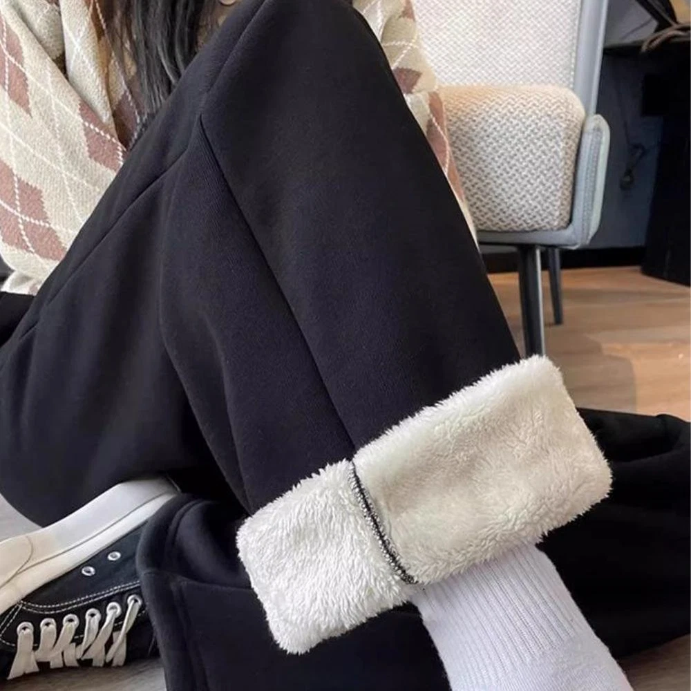 Women Winter Thick Fleece Wide Leg Pants Casual Warm Loose Athletic Pants Xmas