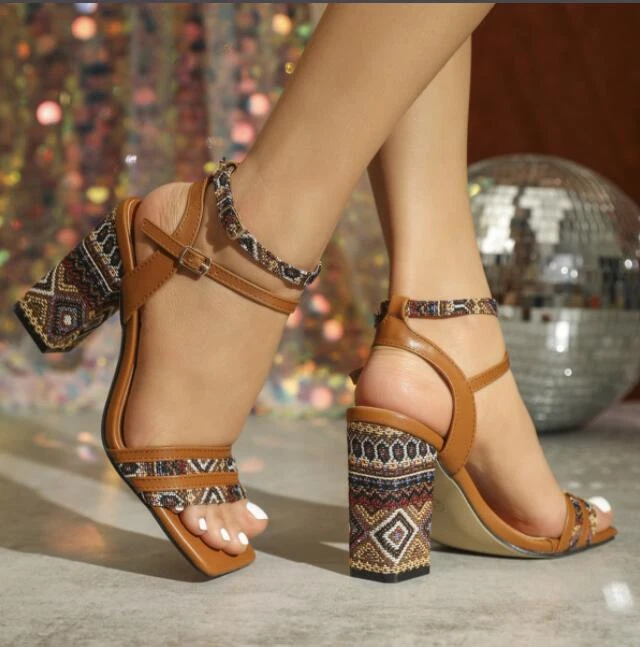 Type: Sandal Heel Height: High (3-3.9 in) Occasion: Party/Cocktail UK Shoe Size: 5 Department: Women Heel Style: Block Upper Material: Synthetic Style: Strappy US Shoe Size: 7 Brand: Unbranded