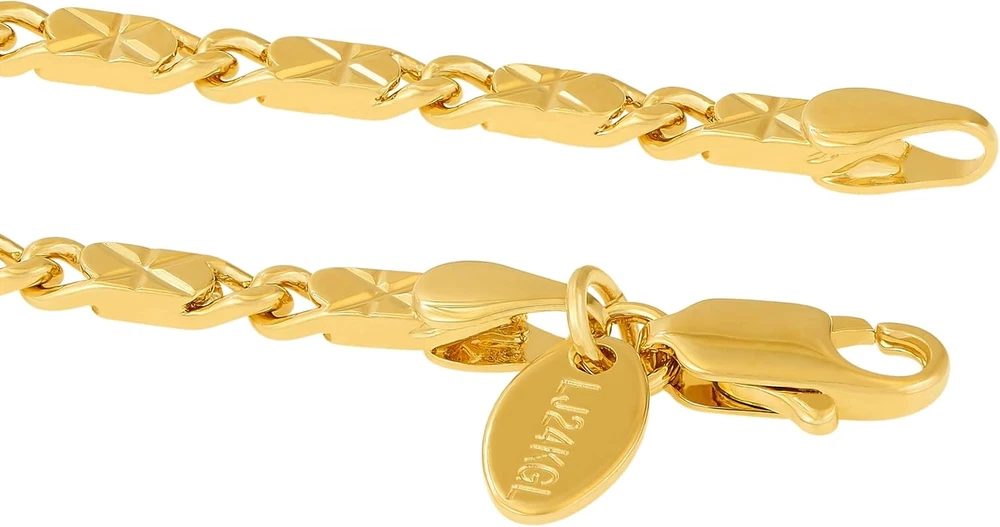 Womens Gold Anklet 4mm Diamond Cut Star Flat Link Chain Ankle Bracelet 24k Gold Plated Product Description Have the look and feel of solid gold at a fraction of the cost ! Lifetime Jewelry 's Diamond Cut Star Flat Link Chain Anklets are made to last. Made of real 24K gold laid over a core of jeweler's bronze, there is up to 20 times more gold than electroplate. This helps make it last and gives it the look of quality. Comes in both: gold plated, as well as rhodium (white gold) plated. YOU CAN BUY EXPENSIVE SOLID GOLD JEWELRY, but would you wear it to the beach? Probably not, right? Wear our anklets anywhere, anytime ! Easy to replace if lost or stolen Wear them at a party or even high class formal occasions. Lifetime Jewelry anklets LOOK AND FEEL LIKE SOLID GOLD We are a family run small business since 1987 We are real people who use our own products every day We expect the best for our families and want the same for yours We cut no corners in our products, and will cut no corners in our support to you Proudly made in USA Item model number Anklet 50B & RD 50B Metal stamp 24K Chain Link Gem Type no gemstone Color Gold Material Metal Metal Gold plated base Model number Anklet 50B & RD 50B Length 9 inches Item Display Length 9.0 Inches Department unisex-child Is Discontinued By Manufacturer No Package Dimensions 3.5 x 3 x 0.59 inches Clasp Lobster Claw 3.0 inches x 3.5 inches x 0.59 inches. Shipping from the USA All of our products are shipped from the USA, ensuring quick delivery to your destination. Payment We offer the following payment methods: PayPal, credit card, bank transfer, and eBay's secure payment system. Free Shipping & Free Returns Shipping within the USA is FREE. Additionally, any return is absolutely free for you. Risk-Free Purchase You have the option to return an item within 30 days without any justification. We cover the return shipping costs! Fast Shipping We ship immediately upon receipt of payment. Generally, the package is delivered within 2-3 days in the USA. If it takes longer, we will contact you. Quality and Costs Made in Europe, USA, China No customs fees or additional charges Total satisfaction guarantee Invoice with declared VAT available upon request in .pdf format Feedback Your feedback is very important to us. After you pay for your purchase, you will automatically receive positive feedback from us.