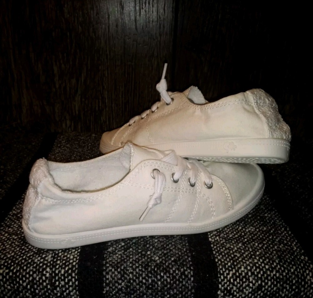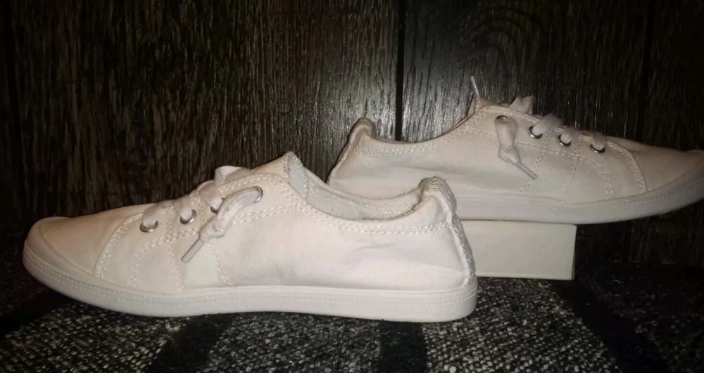 Elevate your casual look with these Pop Shoes women's sneakers in white. Featuring a round toe and lace-up closure, these shoes are perfect for traveling or daily use. The canvas upper material and synthetic outsole material provide durability, while the memory foam features ensure comfort. These sneakers have a low top shoe shaft style and come in a women's size 8M. The eyelet accents and solid pattern add a touch of style to the shoes, making them perfect for school, college, or dance performances. Whether you're walking, running errands, or doing chores, these Pop Shoes are the perfect addition to your wardrobe.