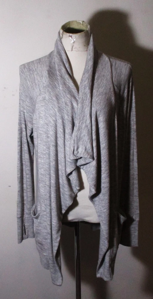 See my EBAY STORE at “SAMTPC53” to view 1000’s more of my Women's SWEATERS!!! Combine Shipping: (on multiple items you pay full price on heaviest item first and then HALF PRICE shipping on ALL other items. Women's Modal Tunic Cardigan Sweater. Brand: ATHLETA. Description: women's Modal stretch ATHLETA long sleeve cardigan wrap sweater, side pockets, see pics. Color: Gray. Size: M (please see measurements). Measurements: 21" armpit to armpit, 32" neckline to hem, 21" insleeve. Material: 97% Modal, 3% Spandex. Condition: Excellent condition.