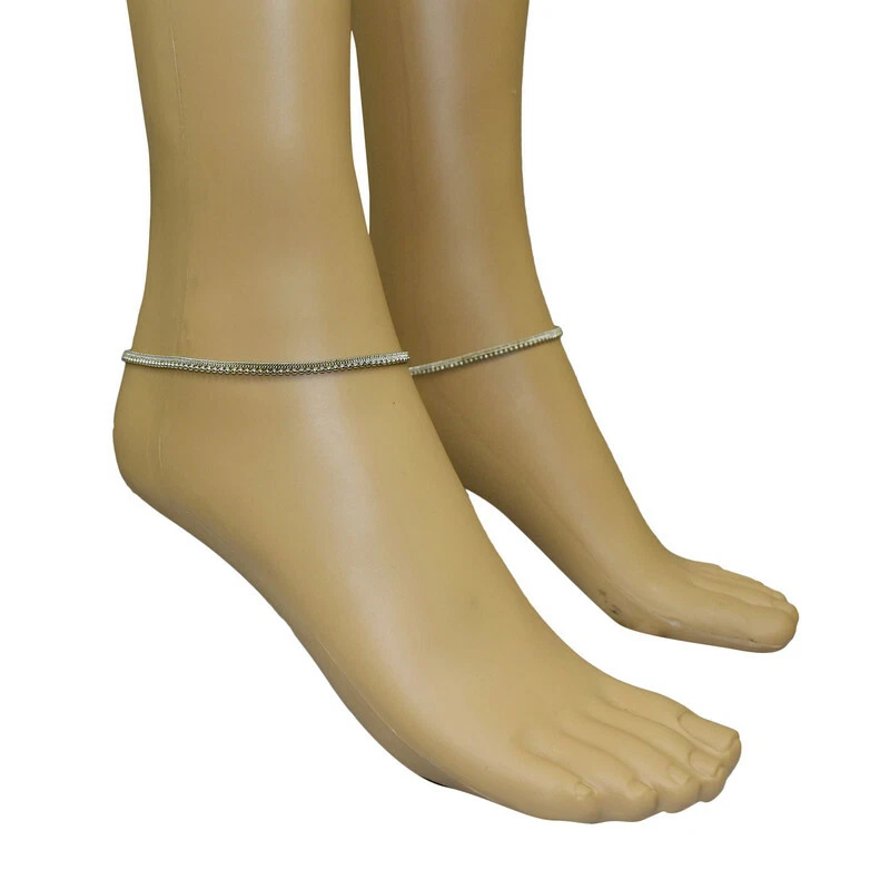 Item Description Women's Anklets Payal Indian Ankle Bracelets Chain Pair Foot Jewellery Sale For:- 1 Pair Size:- Length:-25cm x Width:-0.5cm (Approx) Material:- Metal Color:- Silver Closure:- Hook Type:- Anklets Main Stone:- No Stone About This Item New Traditional Style Anklet For Women And Girls. Ethnic Significance:- Brides Wear It To Draw Attention To And Decorate Their Feet Bells Or Chimes Make A Soft Sound When The Bride Walks Traditionally Payals Are Worn In Both Feet. Style Tip:- Perfect For Spring And Summer Wear.Compliments Most Outfits.Casual Chic Everyday Wear. Perfect Traditional Anklet Contemporary Look,Ideal For Any Ethnic Outfits Like Saree,Lehenga,Gowns,Bridal Wear,Party, Festival,Any Special Occasion, Dance Or As Fashion Novelty Costume Accessories. Ideal For:- Christmas,Thanks Giving,New Year,Valentine,Birthday,Anniversary Or Any Occasion,Gift For Someone You Love Jewellery Care:- Can Be Used In Water But Dry Completely Before Storing. Note:-Buyers Will Be Responsible For Pay Their Country'S Custom Duties Charge, Import Charges And Other Charges (If Applicable) .