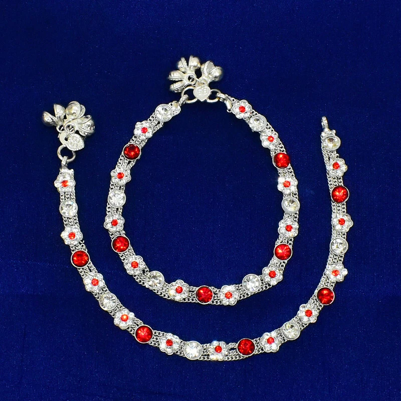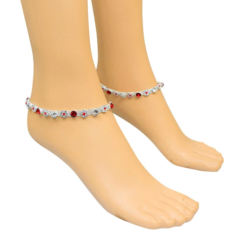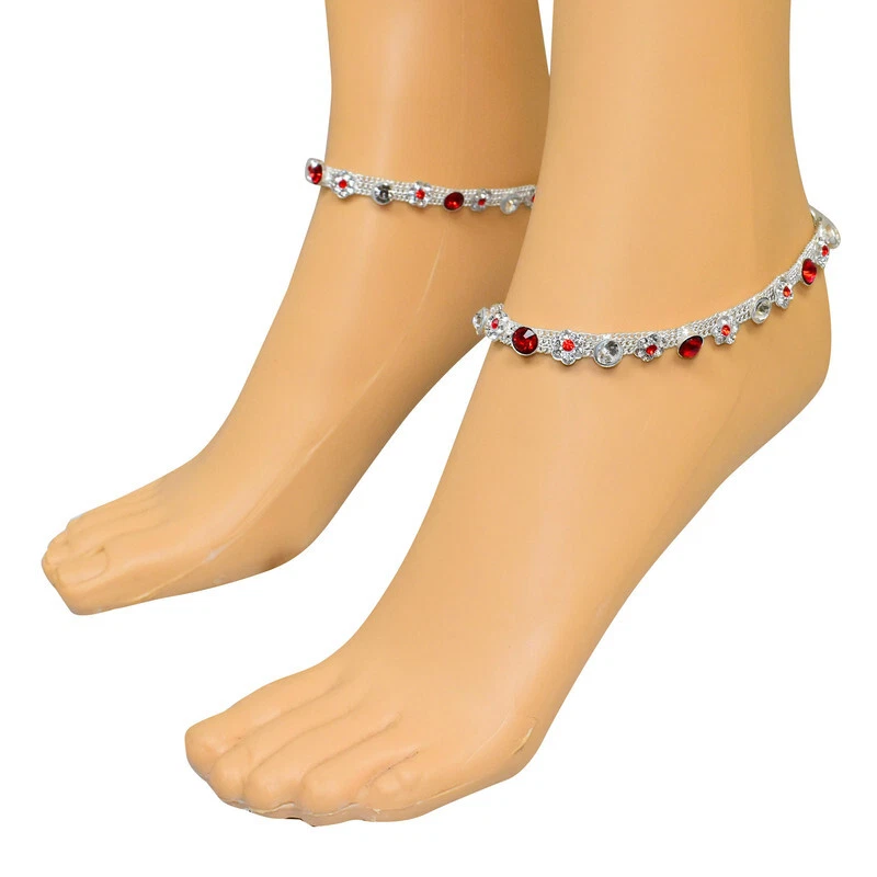 Item Description Anklets Barefoot Ethnic Gypsy Antique Payal Feet Ankle Bracelet Fashion Jewelry Sale For:- 1 Pair Size:- Length:-26cm x Width:-1cm (Approx) Material:- Metal Color:- Red & Silver Main Stone Color:- Red Closure:- Hook Item Weight:- 39 gm Main Stone:- Artificial Stones & Bell About This Item New Traditional Stylish Anklet For Women And Girls. Alloy And Crystal Diamond.The Diamonds Are Neatly And Firmly Set On The Anklet. Sparkle Incredibly In The Sun. Perfect Traditional Anklet Contemporary Look,Ideal For Any Ethnic Outfits Like Saree,Lehenga,Gowns,Bridal Wear,Party, Festival,Any Special Occasion, Dance Or As Fashion Novelty Costume Accessories. Style Tip:- Perfect For Spring And Summer Wear.Compliments Most Outfits.Casual Chic Everyday Wear. Ideal For:- Christmas,Thanks Giving,New Year,Valentine,Birthday,Anniversary Or Any Occasion,Gift For Someone You Love Jewellery Care:- Will Last A Long time And More Will Never Rust - Non Tarnish - If Used In Water Dry Completely Before Storing For Hygiene Note:-Buyers Will Be Responsible For Pay Their Country'S Custom Duties Charge, Import Charges And Other Charges (If Applicable).