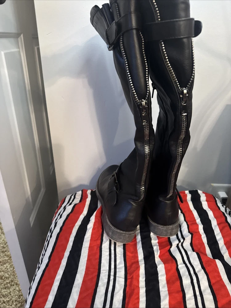 Elevate your riding style with these stunning knee-high boots. Crafted from high-quality faux leather, these boots feature a round toe and zip closure for a secure fit. The buckle accent adds a touch of sophistication, while the low block heel provides comfort all day long. Perfect for any occasion, these black pebbled toe boots are a must-have for any fashion-forward woman. The regular calf width and medium shoe width make them easy to wear, while the knee-high shaft height adds an extra touch of elegance. Whether you're dressing up or down, these boots are sure to turn heads.