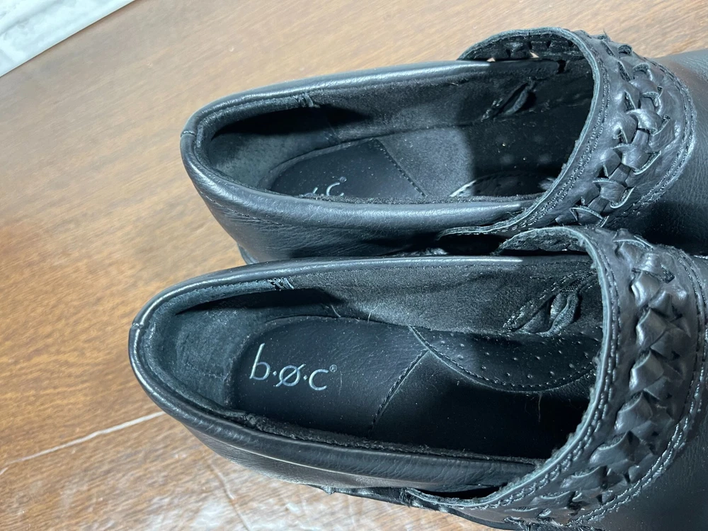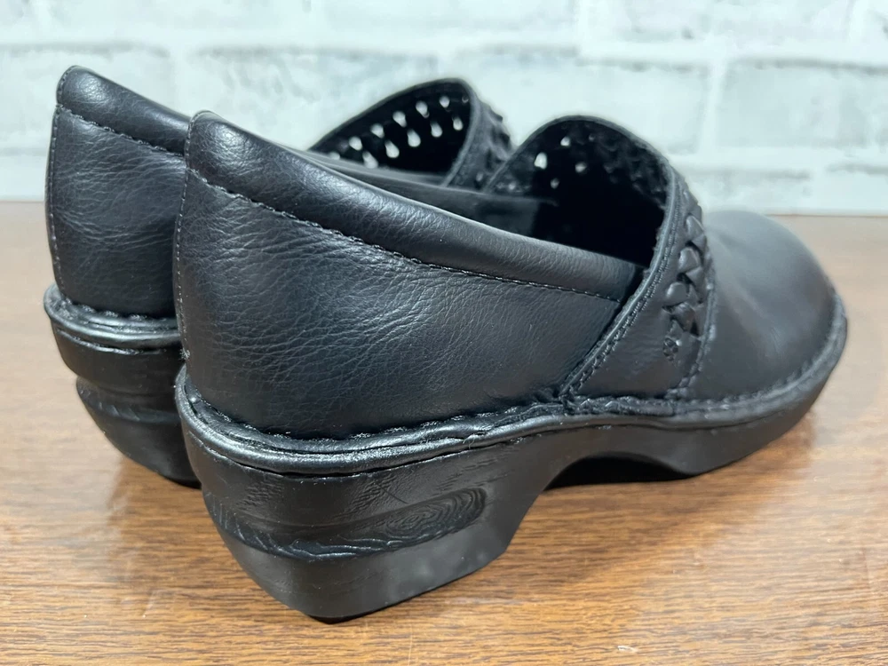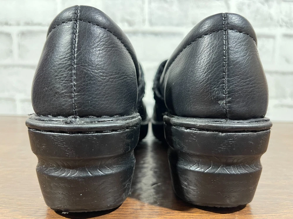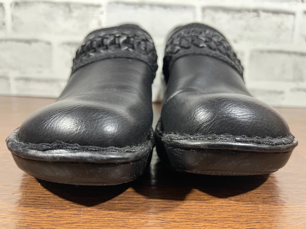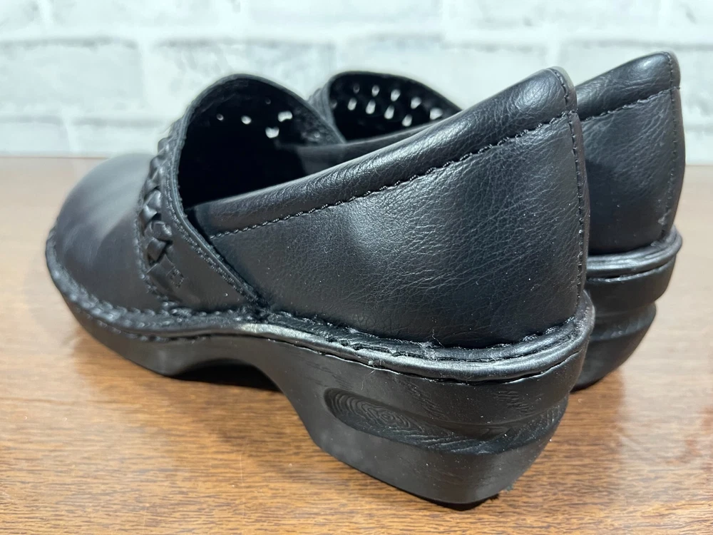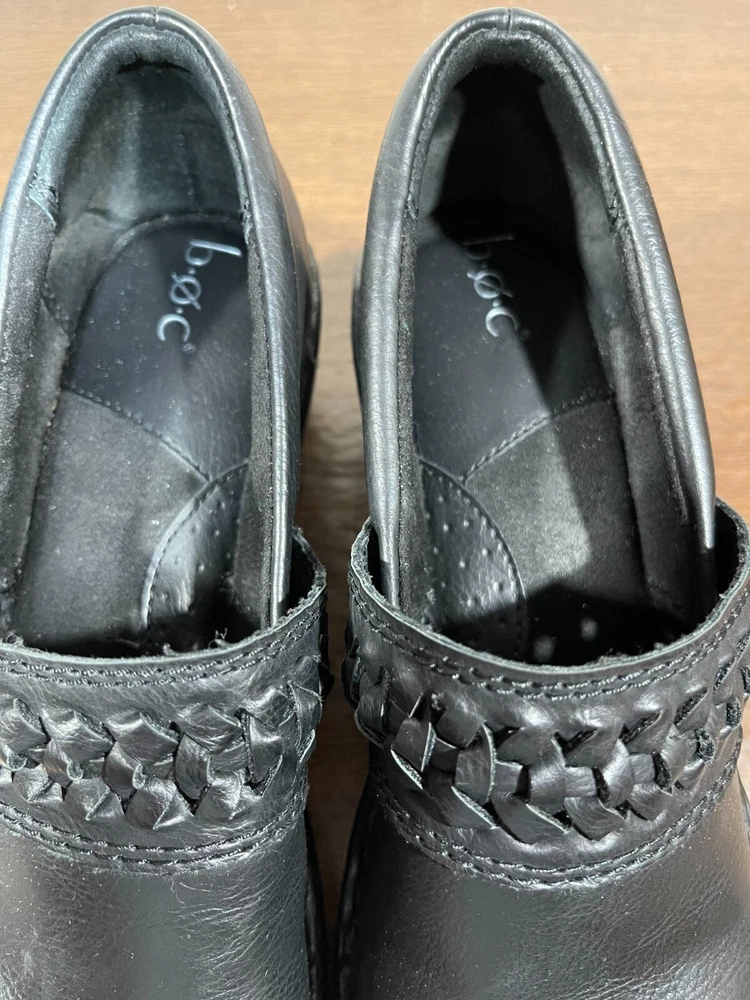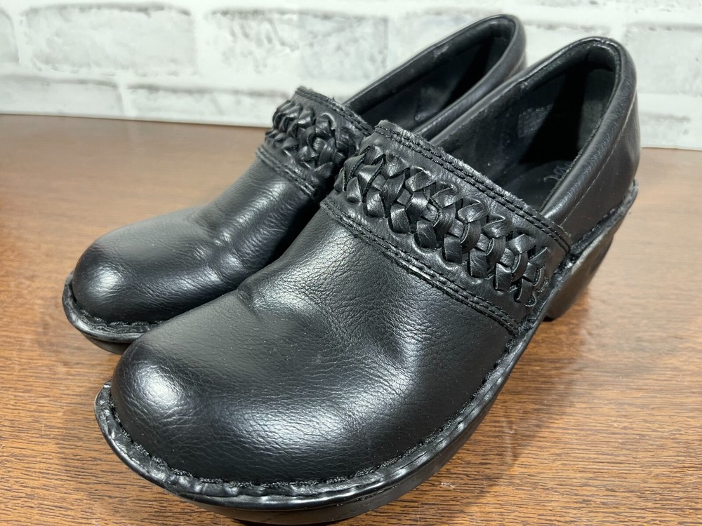 These are women's black clogs from Børn in size 7.5 featuring vegan leather construction with a braided detail. The slip-on style shoes have a round toe shape and a comfortable block heel. Ideal for travel, casual wear, or work, they have a strap accent and a rubber outsole for traction. The shoes are suitable for all seasons and activities like walking and driving. Very good preowned condition with normal preowned wear and no issues. Please see all photos. For clothing specifically, see photos for all measurements and/or any issues if applicable. Pay close attention to the measurements as the size of the garment may quite possibly be different than the actual measurement(s) due to washing, shrinkage, or stretching as these are used clothes. The size in the title is the size on the tag of the garment. See photos for measurements of actual measurements as they may differ. ALWAYS CHECK THE MEASUREMENTS IN THE PHOTOS. This will remove any questions on measurements as well as always cover the possibility of human error in the listing(s) in the case of a typo or oversight. All clothing and shoes have been washed/cleaned, and comes from a smoke free environment. If shoe trees appear in the photos, they are for photography purposes only to illustrate how the shoes look filled out, and are not included. I am available for questions. I accept or negotiate reasonable offers. Have an amazing day. Thank you.