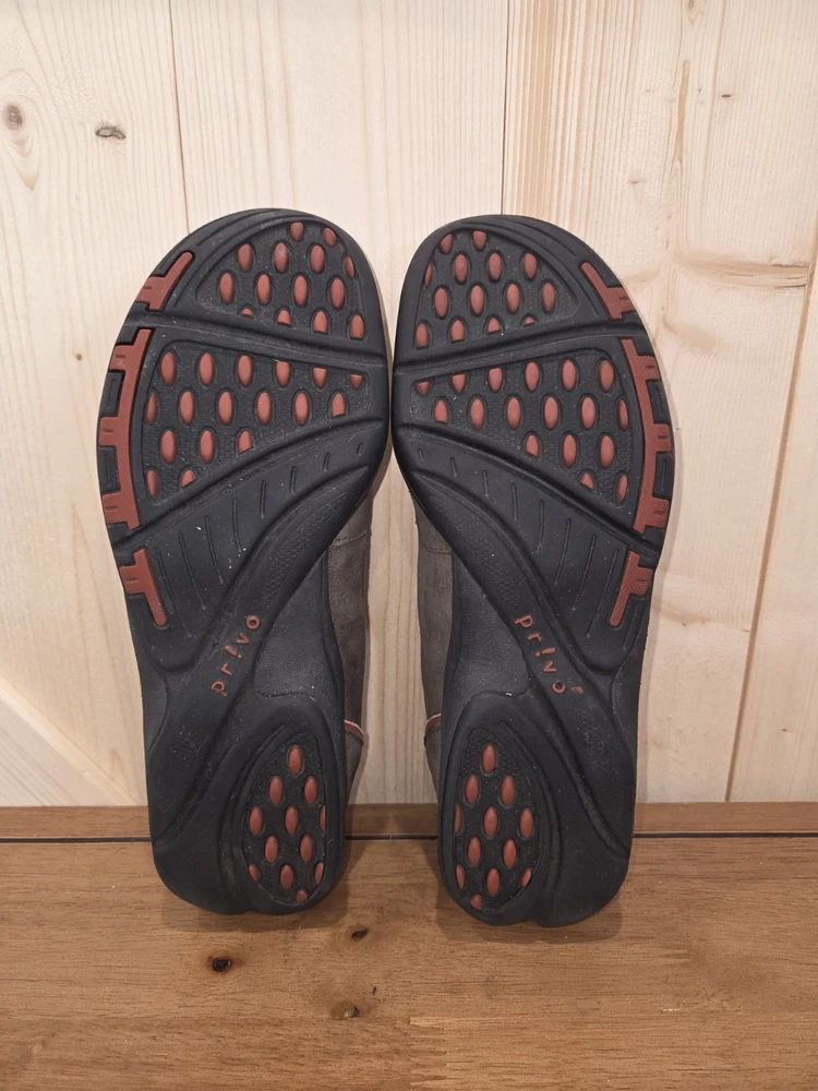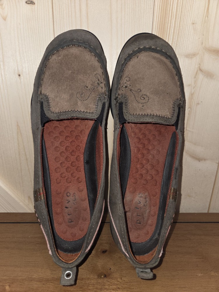 Elevate your shoe collection with these stylish and comfortable Privo by Clarks loafers. The brown and gray suede leather slip-ons feature a round toe shape and a slip-on closure for easy wear. The loafers are perfect for various occasions such as travel, casual outings, and workwear. The upper material is made of leather, and the lining and insole materials are also leather, ensuring durability and comfort. The outsole material is also leather, providing a non-slip grip. The loafers have arch support, are cushioned, and offer maximum comfort. They are suitable for the fall and winter seasons and are available in size 8m. Add these versatile Privo loafers to your wardrobe to complete your look.