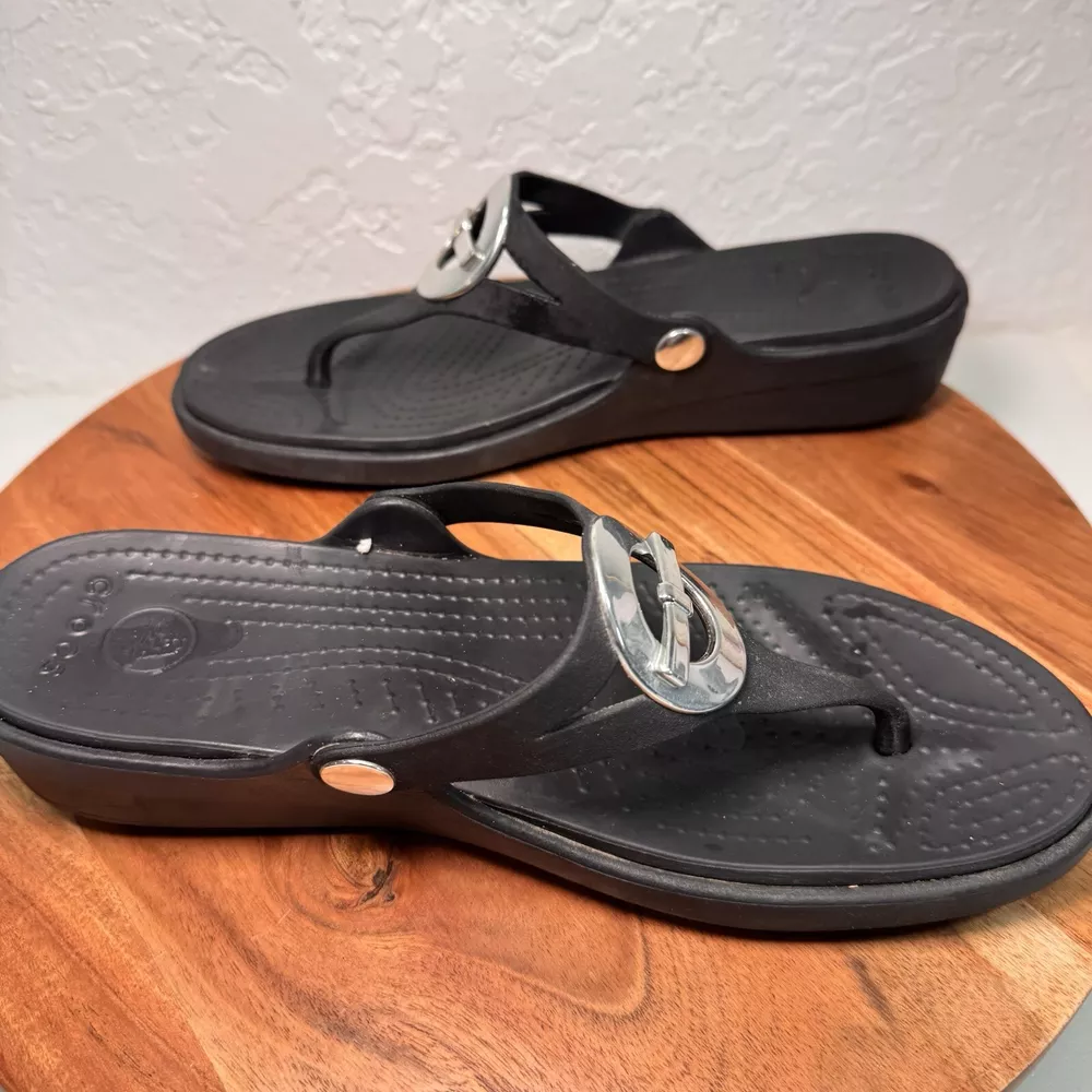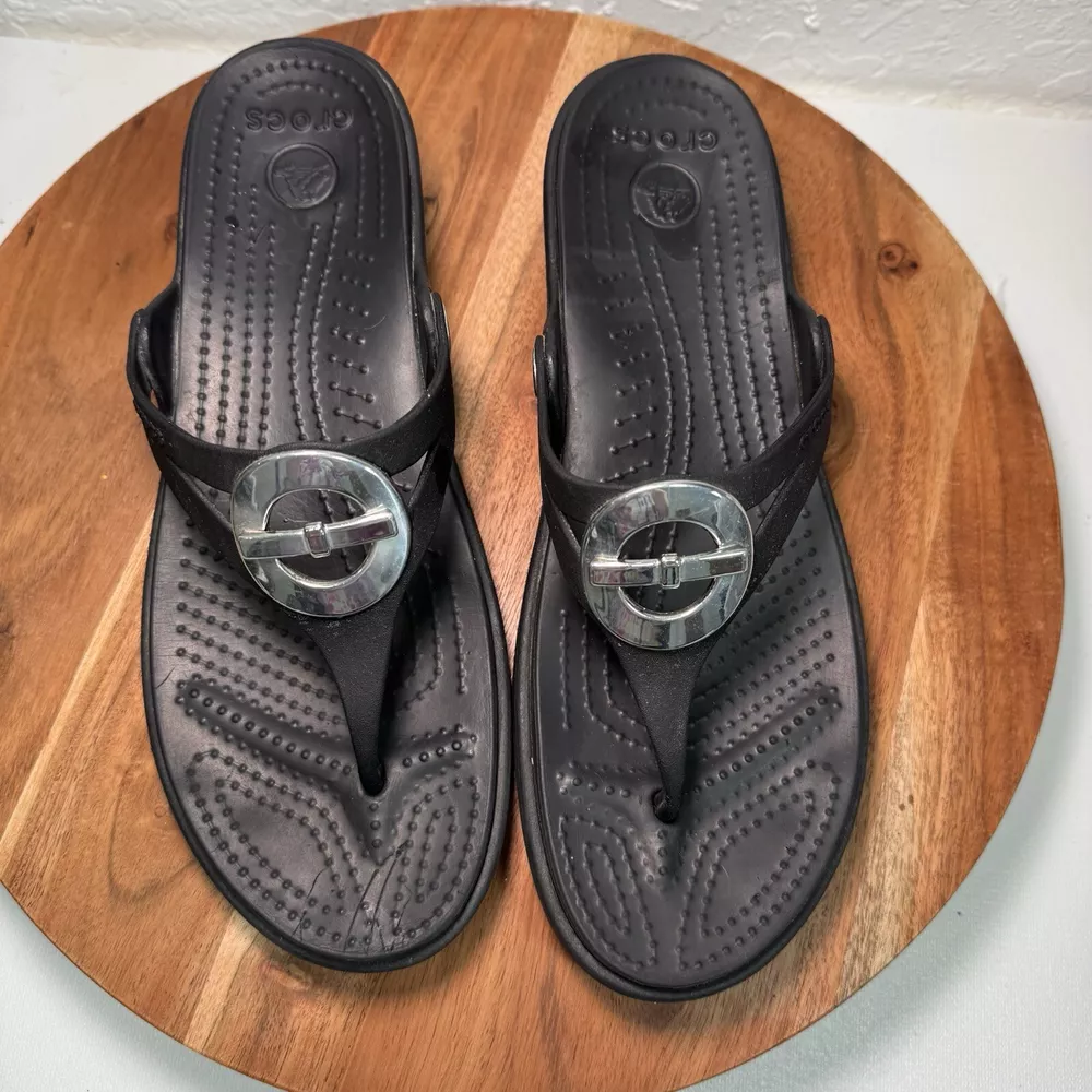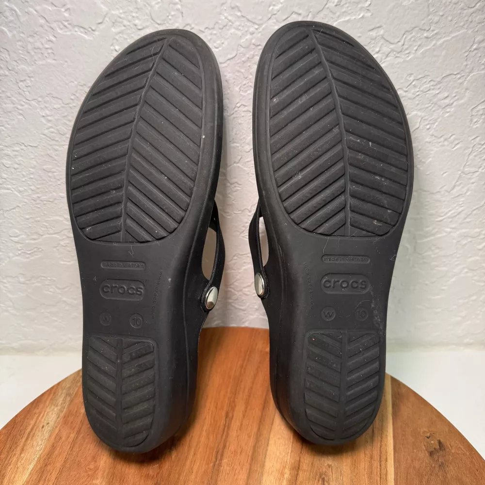 Women’s CROCS Slip On Dual Comfort Flip Flops Black Thong Sandals Womens 10 Pre-owned. No major flaws detected. One shoe has a few specs on them - they may be buffed out but they are not very visible when on. The shoes are in great shape -Crocs flip flops -Women’s 10 -Please inspect photos to approve condition. - From Smoke Free Environment - item shown is the exact item you will receive. -Open to offers -FAST SHIPPING **SHIPS FROM FLORIDA :) Crocs, flip flops, summer, casual,