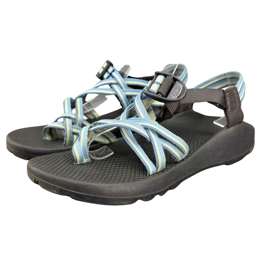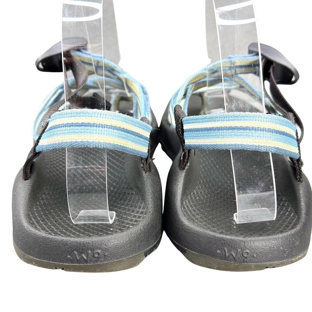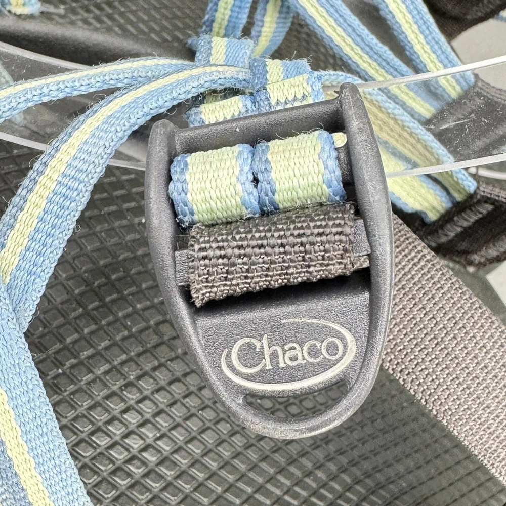 These Chaco Vibram sandals are women's size 9 in blue/white, designed for hiking, trails, and water activities. The sandals feature a strappy style with adjustable buckle closure for comfort. They have a low heel height and a flat heel style, making them suitable for casual and activewear occasions. The sandals are made of nylon material and have standard shoe width, providing a comfortable fit for outdoor adventures. Great preowned condition. ⭐Smoke and pet-free ⭐Examine photos carefully as they are part of the description. ⭐If you need more measurements or images, do not hesitate to contact us. ⭐Ships quickly - same or next business day!