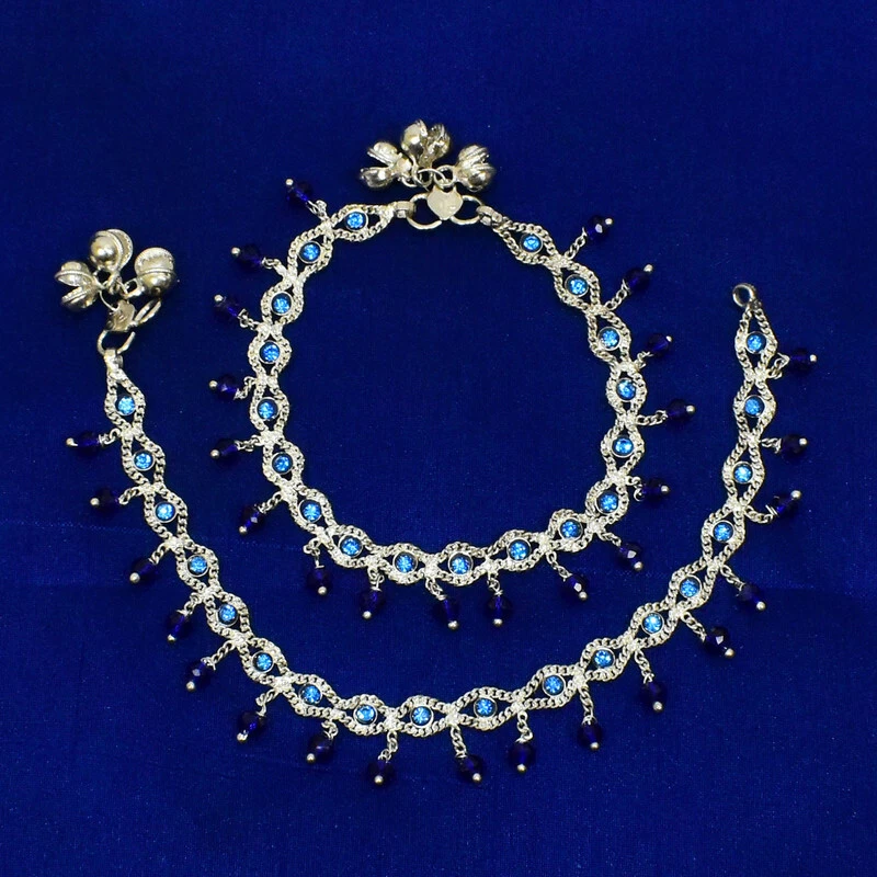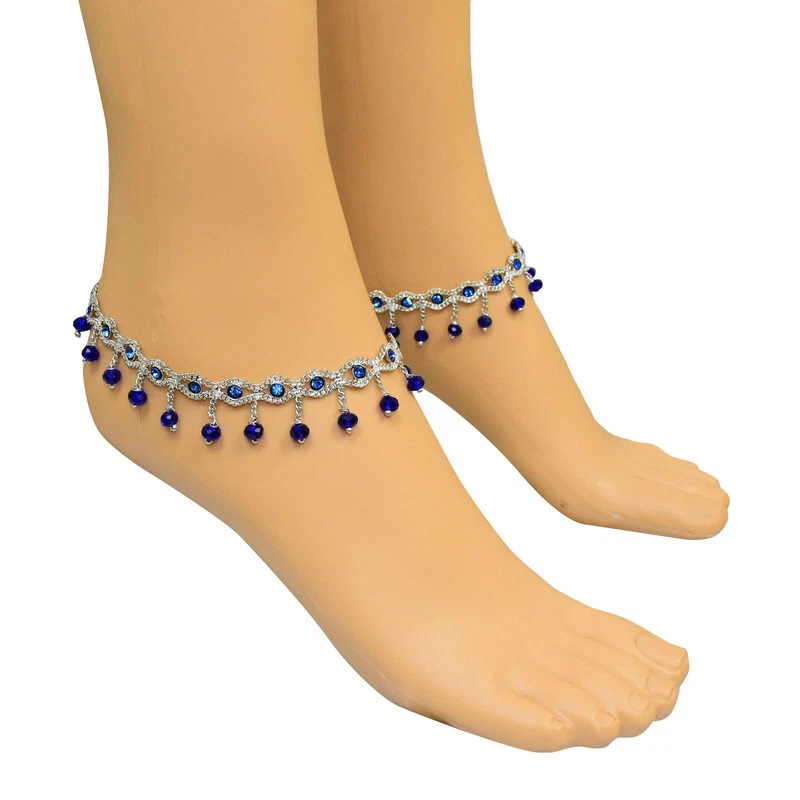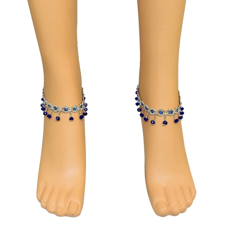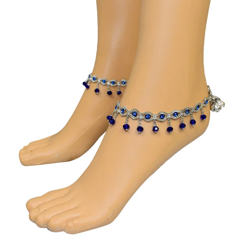 Item Description Anklets Barefoot Ethnic Gypsy Antique Payal Feet Ankle Bracelet Fashion Jewelry Sale For:- 1 Pair Size:- Length:-26cm x Width:-2cm (Approx) Material:- Metal Color:- Royal Blue & Silver Main Stone Color:- Royal Blue Closure:- Hook Item Weight:- 38 gm Main Stone:- Artificial Stones & Beads,Bell About This Item New Traditional Stylish Anklet For Women And Girls. Alloy And Crystal Diamond.The Diamonds Are Neatly And Firmly Set On The Anklet. Sparkle Incredibly In The Sun. Perfect Traditional Anklet Contemporary Look,Ideal For Any Ethnic Outfits Like Saree,Lehenga,Gowns,Bridal Wear,Party, Festival,Any Special Occasion, Dance Or As Fashion Novelty Costume Accessories. Style Tip:- Perfect For Spring And Summer Wear.Compliments Most Outfits.Casual Chic Everyday Wear. Ideal For:- Christmas,Thanks Giving,New Year,Valentine,Birthday,Anniversary Or Any Occasion,Gift For Someone You Love Jewellery Care:- Will Last A Long time And More Will Never Rust - Non Tarnish - If Used In Water Dry Completely Before Storing For Hygiene Note:-Buyers Will Be Responsible For Pay Their Country'S Custom Duties Charge, Import Charges And Other Charges (If Applicable).