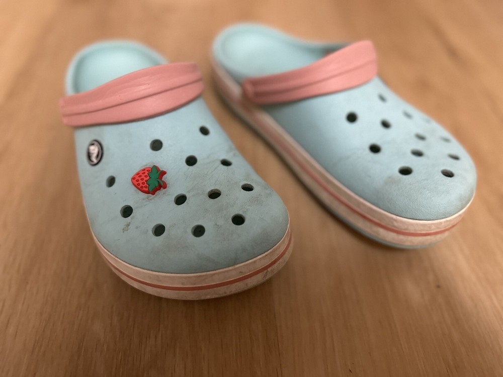 This pair of Crocs Classic clogs for women are perfect for those who prioritize comfort and practicality. Made with lightweight and breathable Croslite material, these clogs feature a closed-toe design and slip-on closure for easy wear. The multicolor blue and pink design with strap and logo accents add a touch of style to these casual shoes. Ideal for travel, activewear, and casual occasions, these clogs are suitable for walking, school, and beach activities. The flat heel style and standard shoe width provide a comfortable fit, while the rubber outsole, insole, and lining ensure durability and support. These Crocs Comfort Slide clogs are a must-have addition to any woman's shoe collection.