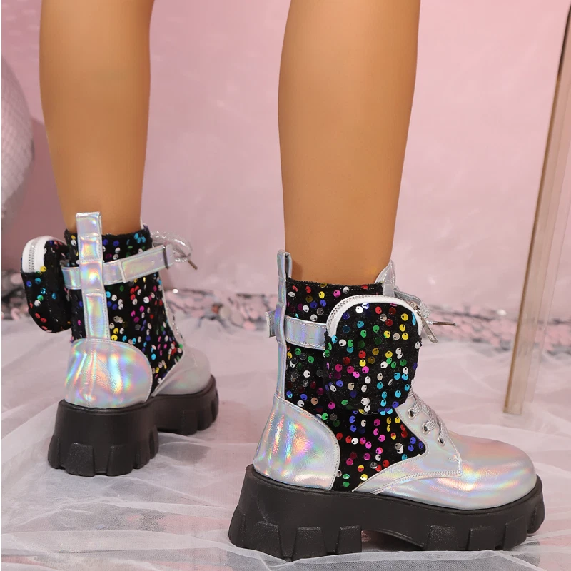 $ 13.01Chunky Platform Knee-High Boots for Women with Studs Chains and Zip