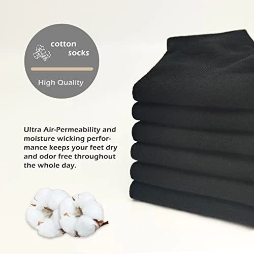 Women's Cotton Socks, Soft Thin Breathable Moisture Wicking Ankle 6-11 Black