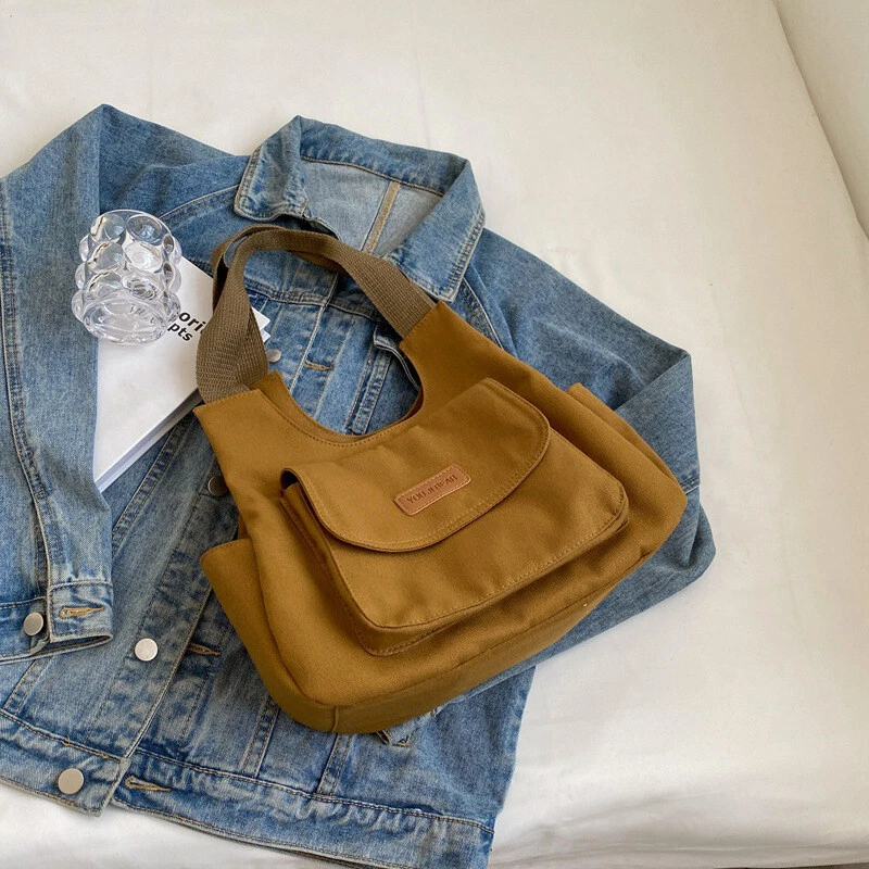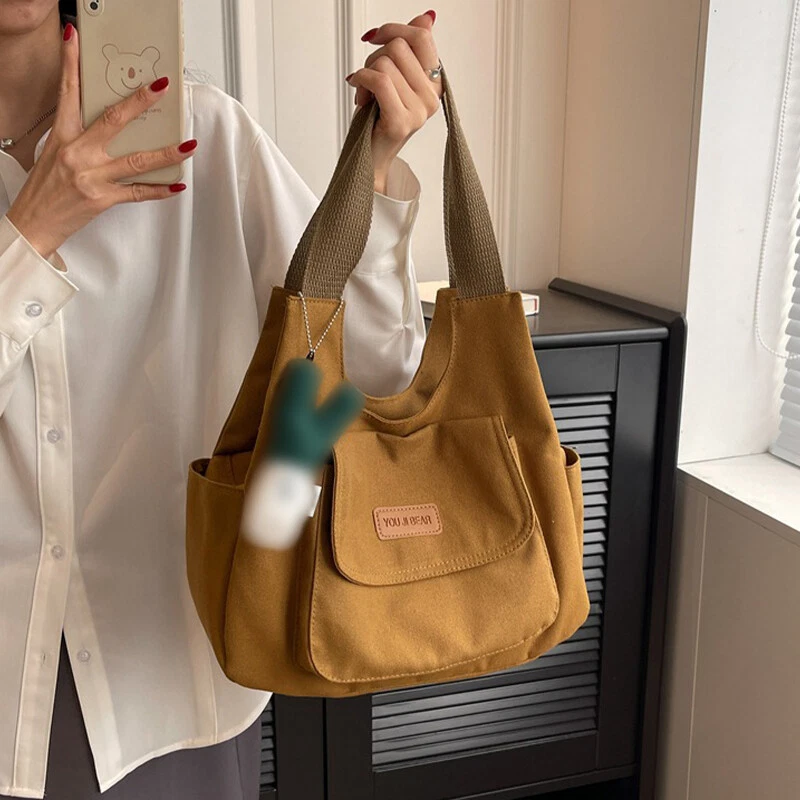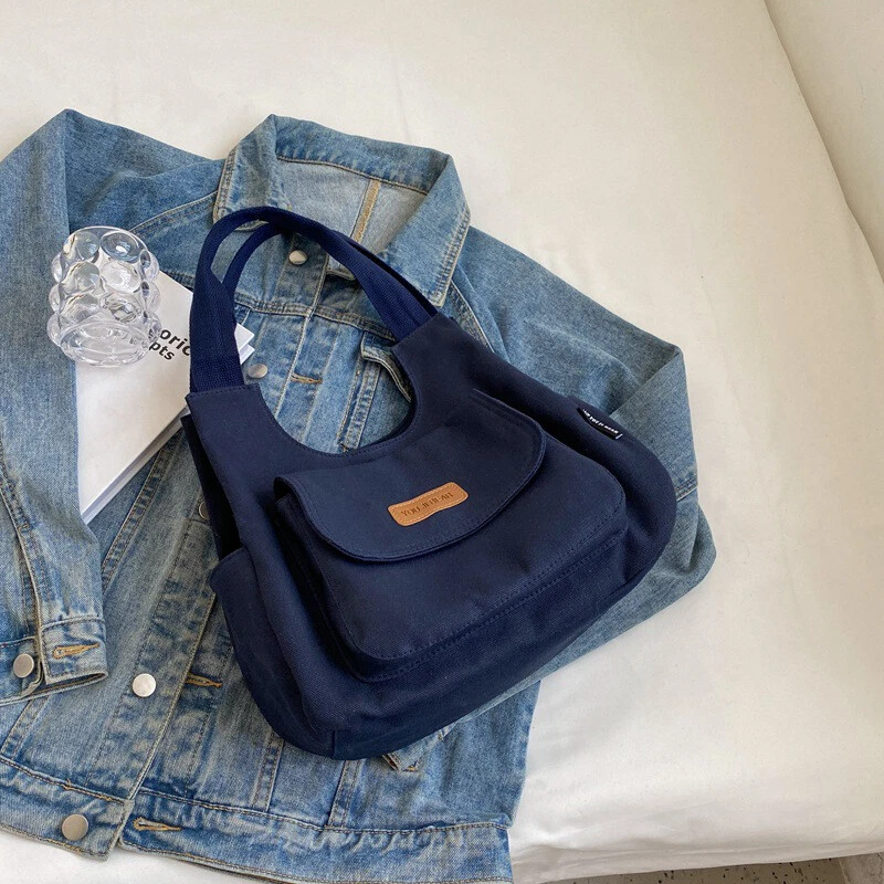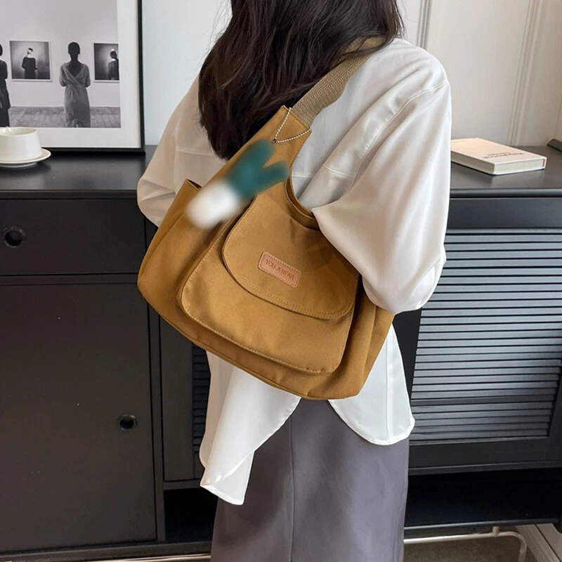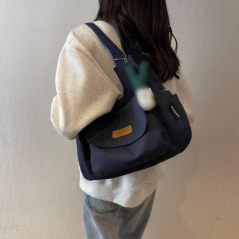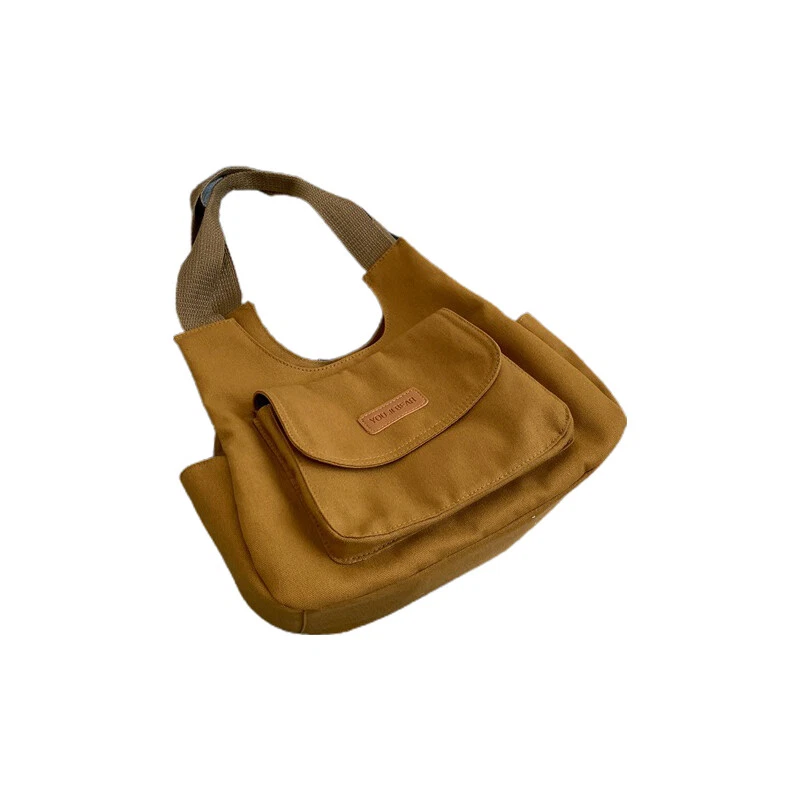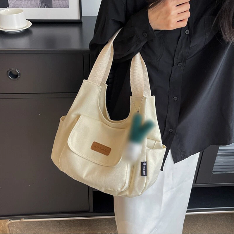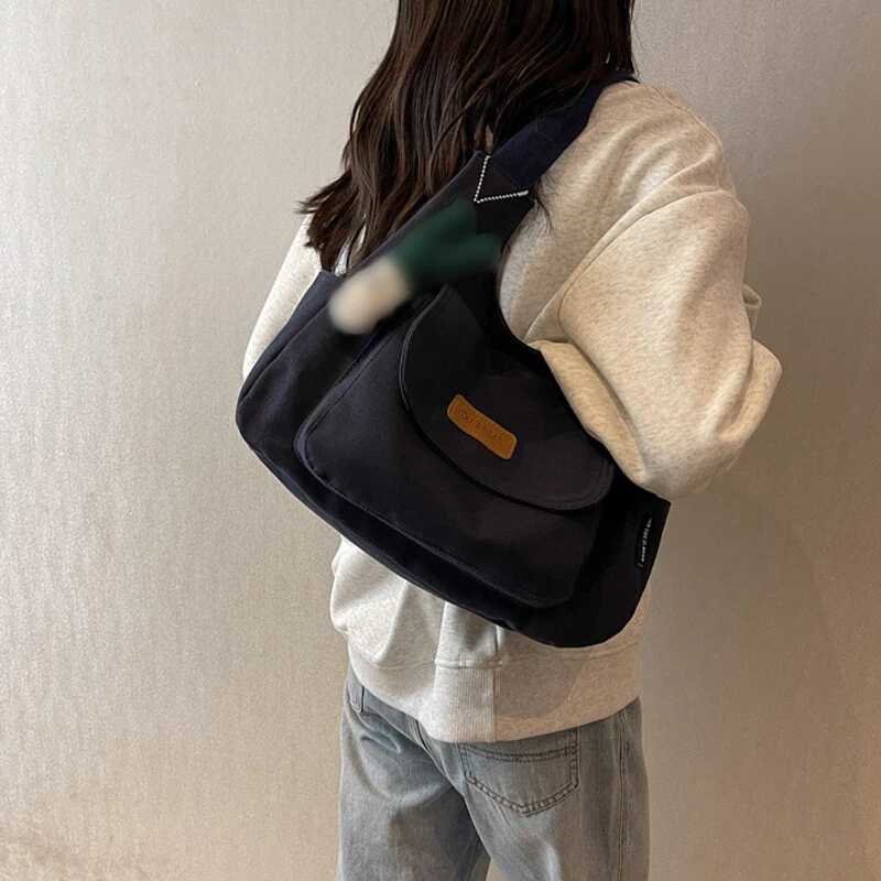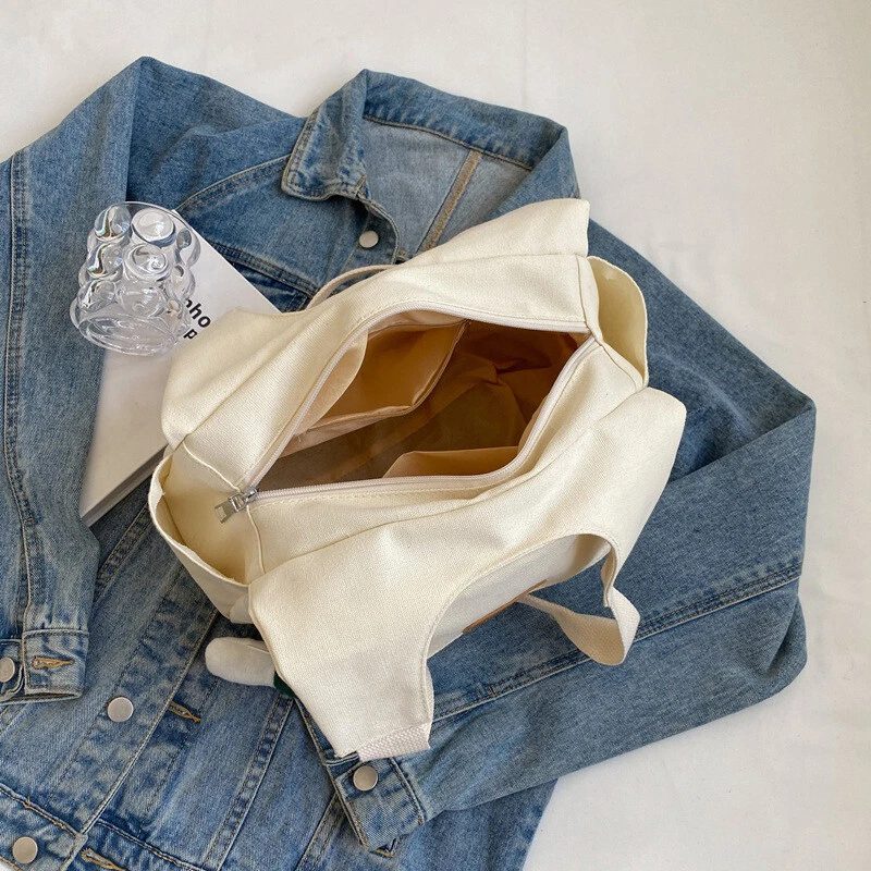 Color: Brown, Dark Blue, White Material: Canvas Bag style: Shoulder bag Lining: Polyester Opening method: Zipper Applicable scenarios: daily matching, commuting to work, students attending classes Package included:1 x Canvas Bag