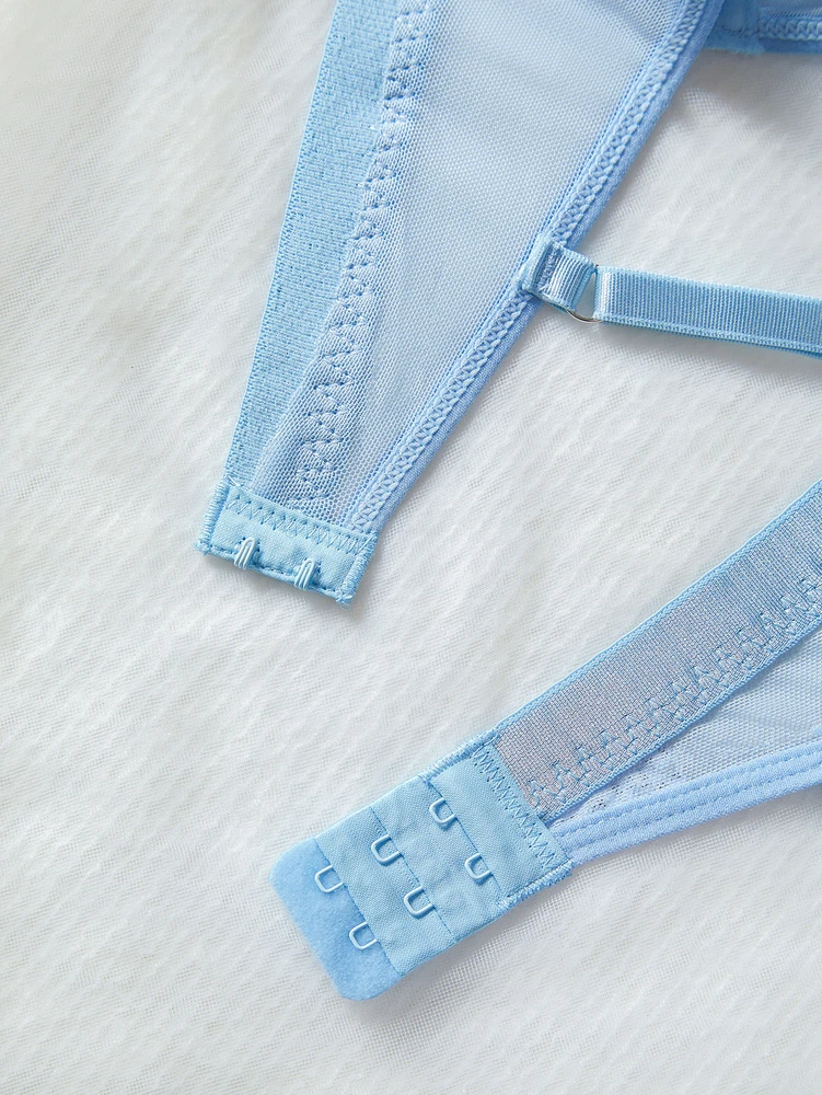 Description: Material: 65% Cotton, 35% Polyester. Fabric has no stretch. Hook and Eye closure Floral appliques, mesh sheer and adjustable spaghetti straps, classy and breathable to wear A hook & eye back closure, panties, bra, garter, choker , waist chain, four piece lingerie suit Suit for valentine's day,wedding night, honeymoon, ann iversary and pecial night