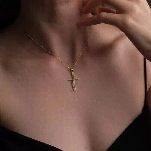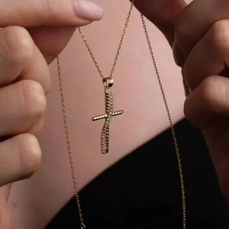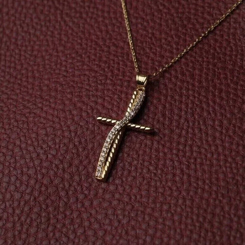 Women's Gorgeous Cross Pendant Round Simulated Diamond In 14K Yellow Gold Plated