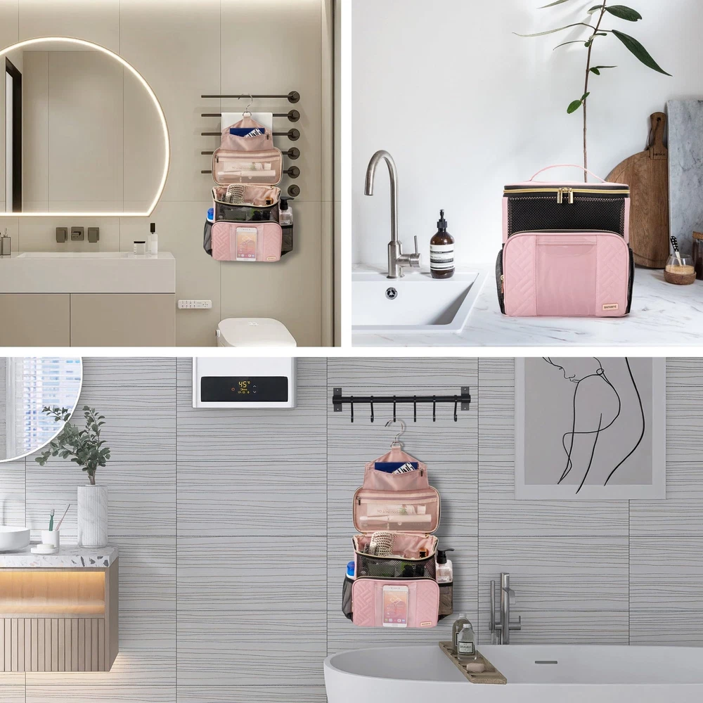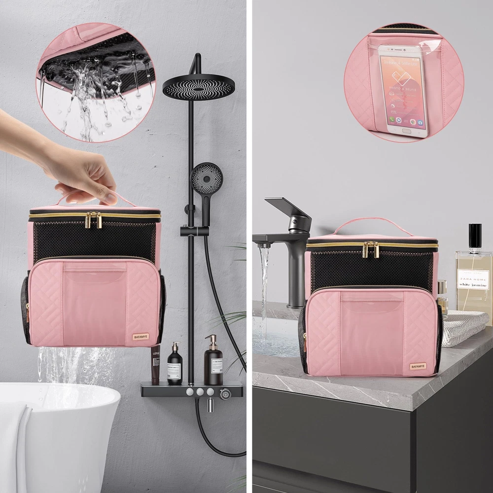 BAFAMYE Women's Hanging Travel Toiletry Bag - Large, Durable, Multipurpose and TSA Approved for the Modern Traveling Woman, Pink Capacious Design - With dimensions of 10in x 10in x 6in, this travel toiletry bag for women can easily accommodate up to 2.6 gal or 9.8L worth of essentials, making it a convenient toiletry bag for women traveling. Durability and Quick-Dry - Fabricated from sturdy oxford fabric and PVC, the BAFAMYE toiletry bag for women exhibits enhanced durability and fast drying abilities. Say goodbye to prolonged wait times for a dry bag! TSA-Compliant - Travel without worry as this women's toiletry travel bag adheres to TSA guidelines, making it a preferred TSA toiletry bag. Unique Multipurpose Use - This women's hanging toiletry bag is not only for travel but can also be utilized for gym use, outdoor activities, and home storage. Truly a toiletry travel bag women would find indispensable! Convenient Phone Access - Not many toiletry bags allow you to keep using your phone in the shower. This unique feature sets our hanging toiletry bag for women apart from others. SHIPPING Domestic Buyers - We have confidence in our products, but if you are not fully satisfied please contact us within 30 days of purchase and you will get full refund. - We ship within 3 business days of payment, usually sooner - We offer FREE shipping on all orders! - We only ship to the lower 48 states, no APO/FPO addresses or PO Boxes allowed International buyers – please note: Import duties, taxes, and charges aren't included in the item price or postage cost. These charges are the buyer's responsibility. - Please check with your country's customs office to determine what these additional costs will be prior to bidding or buying. * Order Cancellation Policy ** You can return a product for up to 30 days from the date you purchased it. 1. The seller reserves the right to cancel the special case only due to eBay cancellation fee. 2. The decision of seller is the final. 3. The seller will respond to the cancellation request within 2 business days. Please wait for the result of cancellation. 4. In case the cancellation is not completed by some reasons, the buyer can follow the options below to get the refund. 4.1 The buyer can reject the item when it arrives. 4.2 The buyer can send the item back to the seller within 30 days If the buyer receives item (USA Shipment ONLY). The seller will provide the FREE return label to the buyer when the buyer opens " Return Item" case on eBay by using the reason as "Change my mind" ONLY. 5. When buyer has placed the order. The order will be processed and completed by automatic warehouse system within 5 minutes. In case that buyer sends the cancellation request after 5 minutes of placing the order, the request will be rejected. **Sending direct message to cancel the order is not allowed for every case.* Return Policy For the return case - If buyer would like to return the items for refund or replacement, please CONTACT SELLER to receive the free return label from seller. The refund or replacement will be processed with the tracking number of return label which is provided by seller only. The other ways of return which are not approved by seller will not be processed for the refund or replacement.