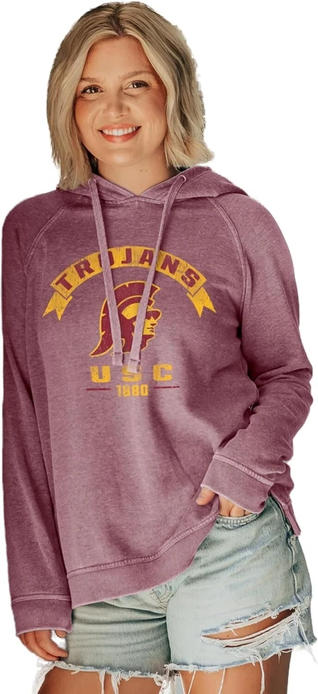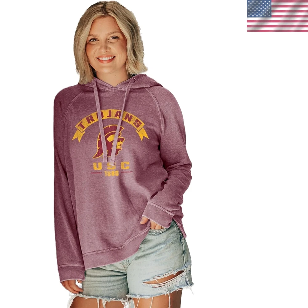 Women's NCAA Officially Licensed Hooded Sweatshirt Burnout Vintage Scholar fan favorite USC Trojans women's burnout hoodie This USC ladies hooded sweatshirt has a vintage graphic perfect for any Trojans fan that loves to show their team pride Each USC Trojans sweatshirt is made from a soft bi-blend fleece and has a stylish burnout wash This comfortable sweatshirt is great for layering or wearing on it's own, making it a perfect addition to any USC fans wardrobe All products are officially licensed by the universities and produced using ethical sourcing and manufacturing practices Proudly display your team pride with this ladies hooded sweatshirt. It's durability will ensure a long of cheering on your favorite team. The vintage graphics make for an extraordinary looking women's burnout hoodie