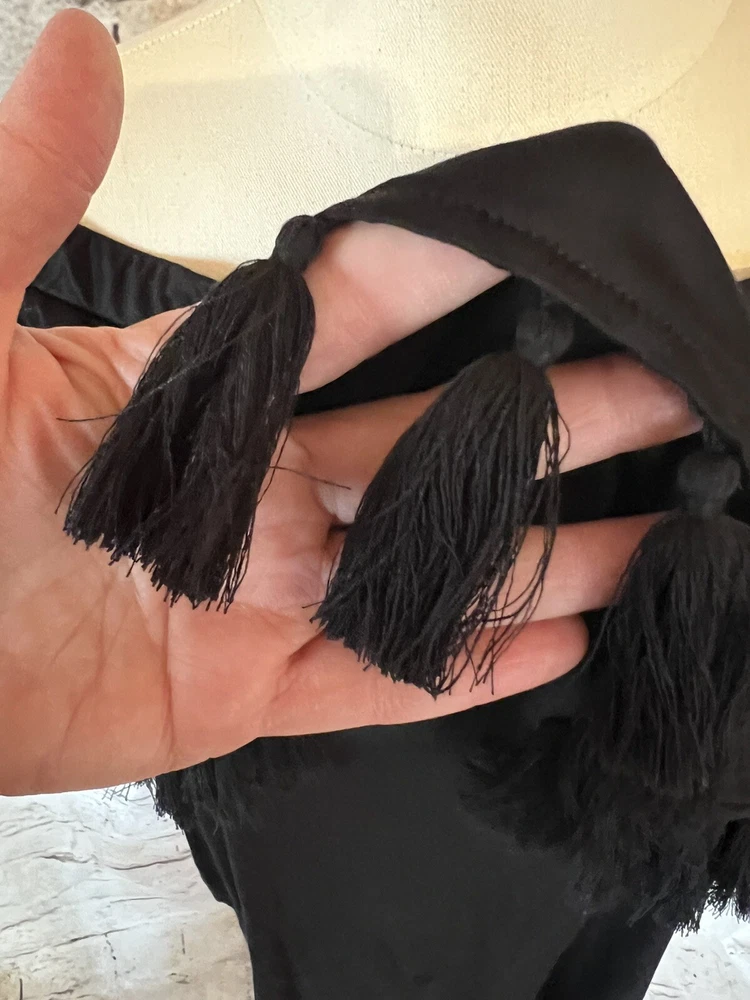 Elevate your wardrobe with this stunning sleeveless blouse from White House Black Market. The black fringe accents on the round neckline add a touch of unique style that's sure to turn heads. This blouse is made from a blend of polyester and rayon, with a focus on comfort and durability. It's perfect for any occasion, whether you're dressing up for a night out or keeping it casual during the day. The size medium fit is ideal for regular size types, and the rayon fabric type adds an extra layer of softness to the blouse. Don't miss out on this must-have addition to your wardrobe!