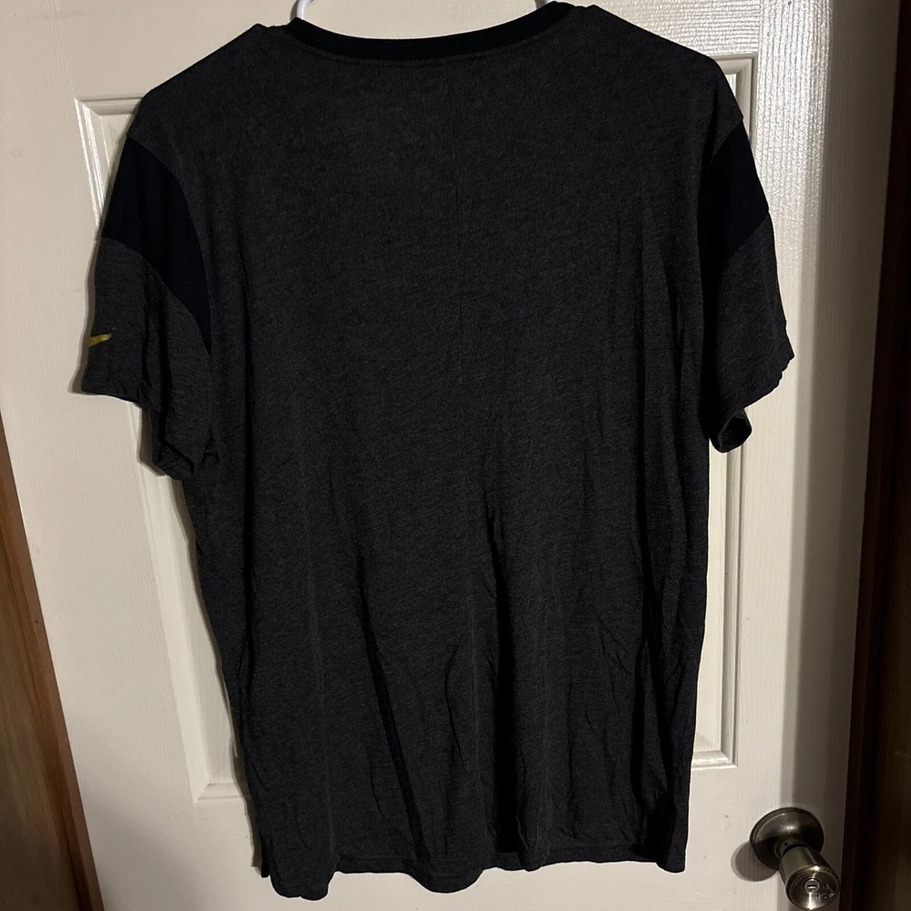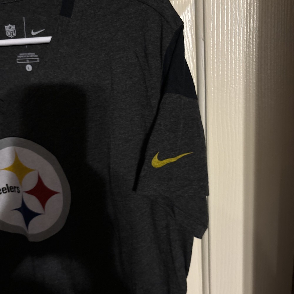Show your support for the Pittsburg Steelers with this Women's SS Blouse from Team Apparel. The multicolor blouse features the team's iconic logo and is made from a comfortable polyester blend material. The blouse has a V-neckline and is a size large, perfect for any fan. W23 Whether you're heading to the game or just want to show off your team spirit, this blouse is a great choice. The basic style and regular size type make it easy to wear, while the Nike Swoosh adds a touch of sporty flair. Get ready to cheer on the Steelers in style with this Women's SS Blouse. International charges are the buyer’s responsibility. No international returns.