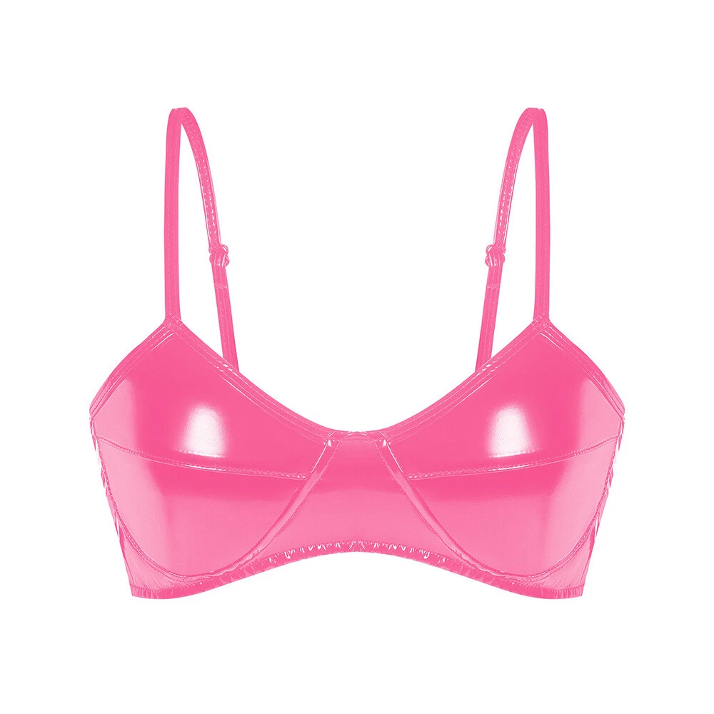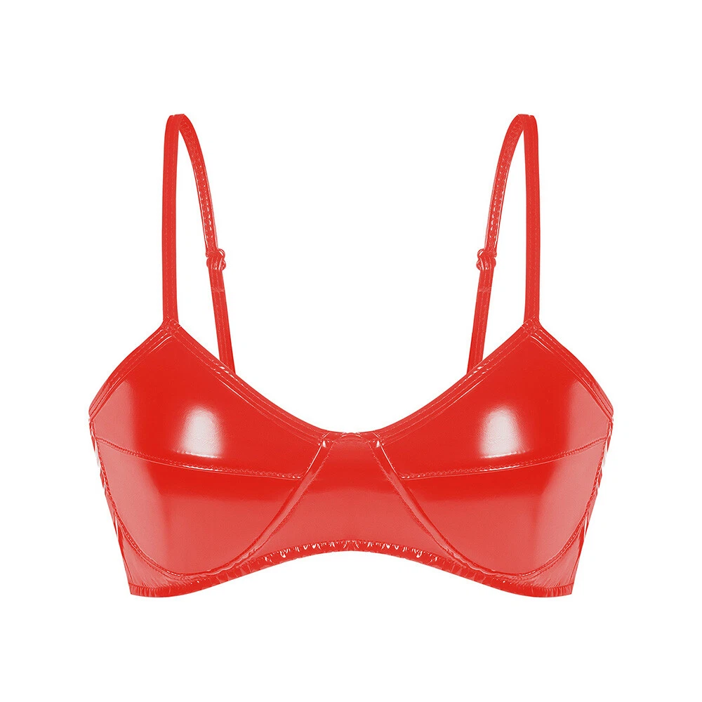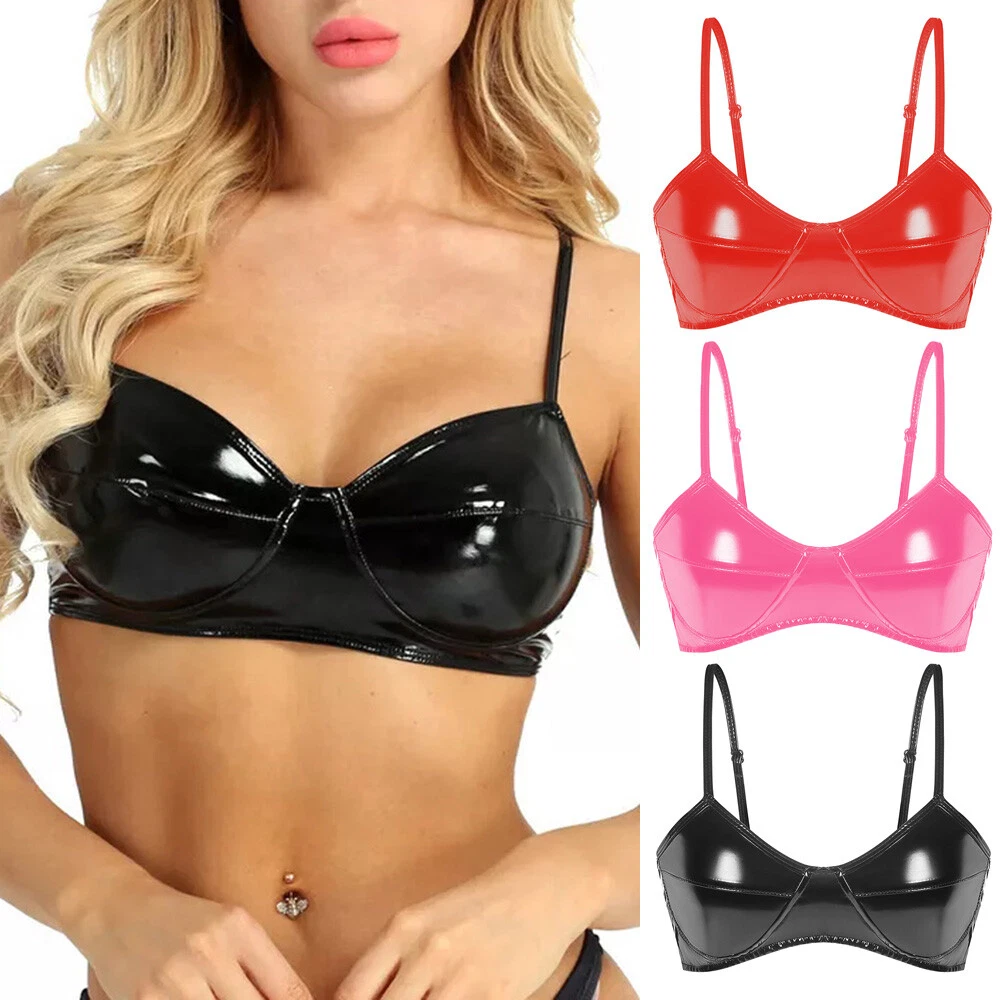 Description: 100% Brand New and high quality. Features: Material: Patent Leather Style: Sexy Color: Black, red, pink Size: S,M,L,XL,XXL,XXXL Underwire Type: Wireless Package Includes: 1 x Bra Notice: 1. Please allow 2-3% error due to manual measurement. Please make sure you do not mind before you bid. 2. The colors may have different as the difference display, please understand.