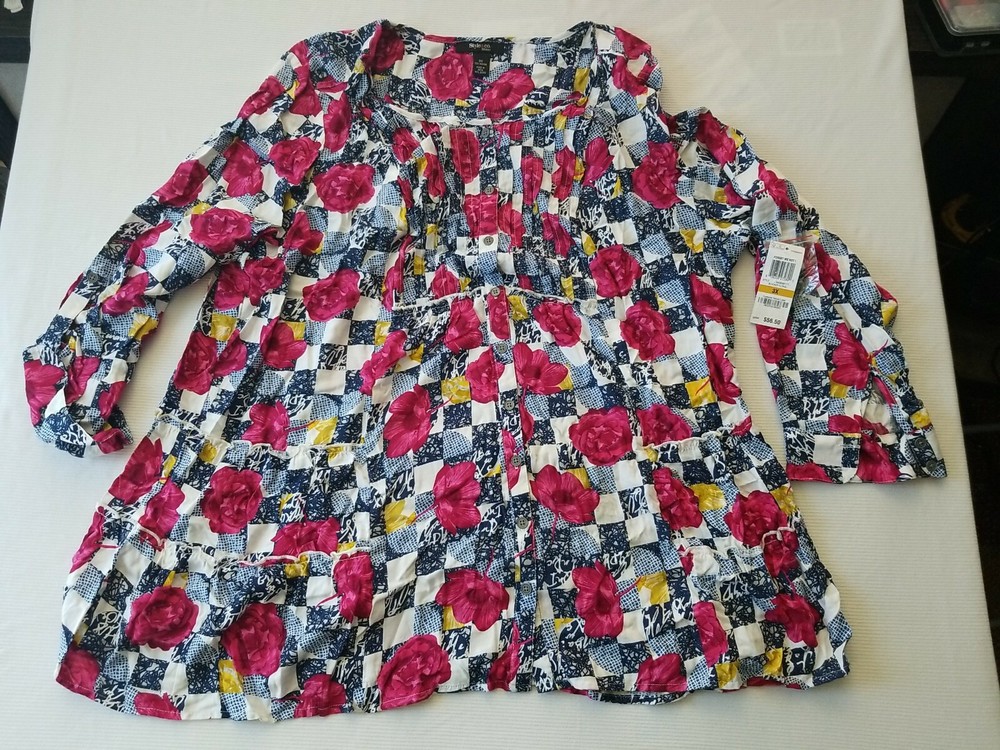 Women's Pintucked Pattern Checker Buttoned Top SIZE 3XL SO Cute On Buy Now This top is well made and is super cute on. Very Comfortable sleeves fold up or wear it long. This works as Casual or Business SIZE 3XL CHEST 25 INCH FLAT 50 INCH AROUND LENGTH 30 INCH If you have any questions at all Please message me on Ebay THANK YOU FOR YOUR PURCHASE IT IS APPRECIATED E2