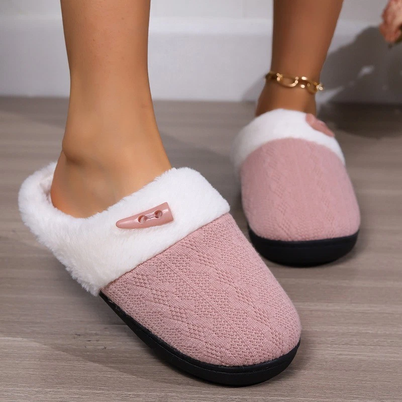 Women Indoor Outdoor Slip On Slippers Faux Fur Lined Comfortable Slippers
