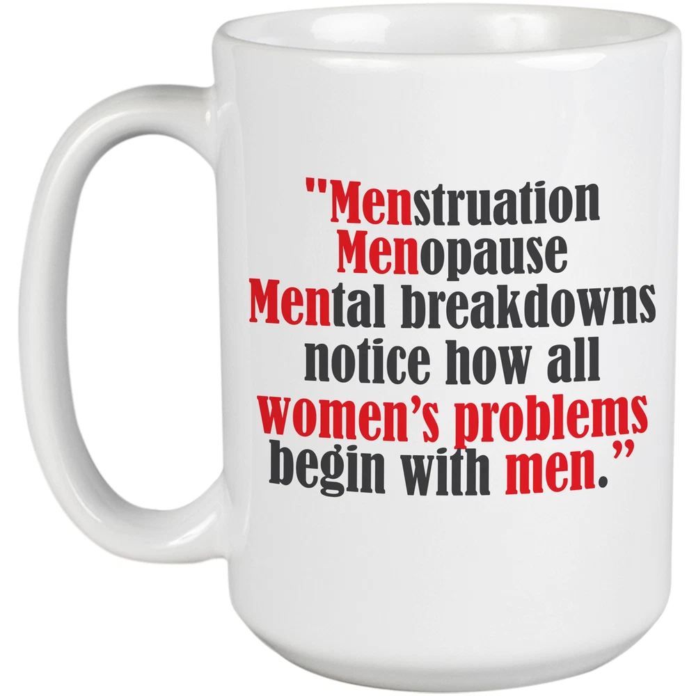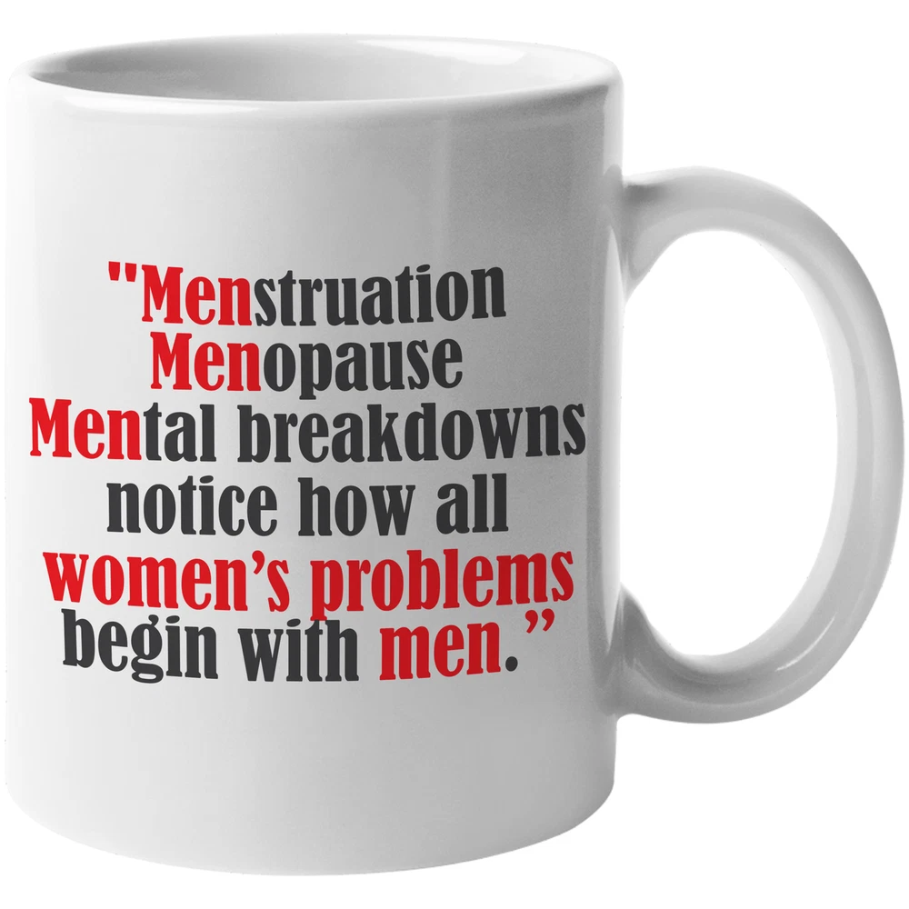 Women's Problem Begin with Men. Funny Coffee & Tea Gift Mug