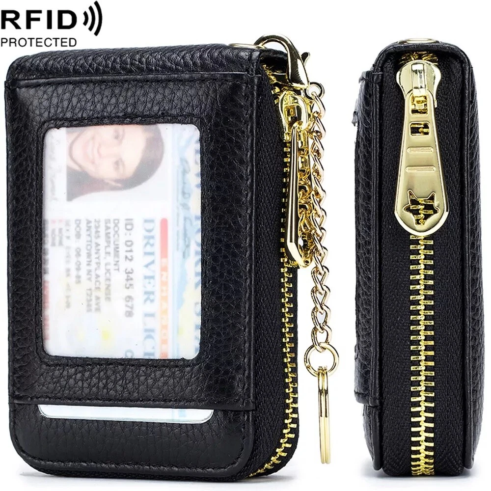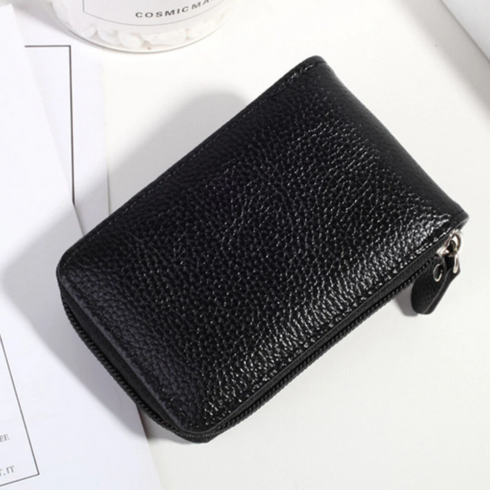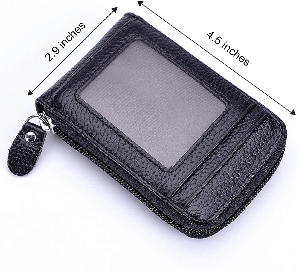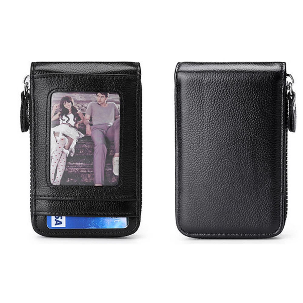 With key chain: *12 card slots,2 coin pockets,1 extra photo slot,1 key ring. *Storage Card holder; Multi-card card package;Leather organ card package *Fashionable,simple,soft texture *Shield electronic waves to improve safety Material: Genuine Leather Size:11x7.5x2.5cm Usage: Holder money/cash/cards Closure Type: Zipper without key chain: M aterial: Genuine Leather Size: approx. 4.5 x 2.9 x 0.59 Inch Weight : approx 75g 1 Outside Credit Card Slots 1 ID Window 2 Short Bill Slot 9 Interior Credit Card Slots Package includes: 1 x Card holder case