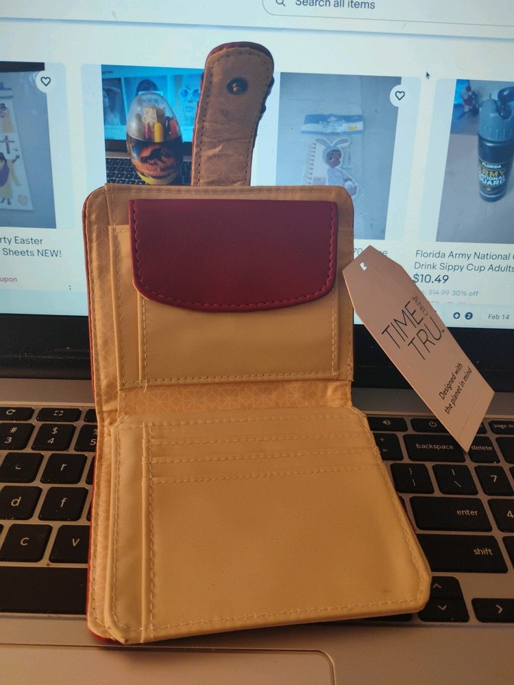 Brand: Time And Tru UPC: Does Not Apply gtin13: Does Not Apply Department: Women Color: Red Features: Folding Material: synthetic Type: Wallet Style: Everyday