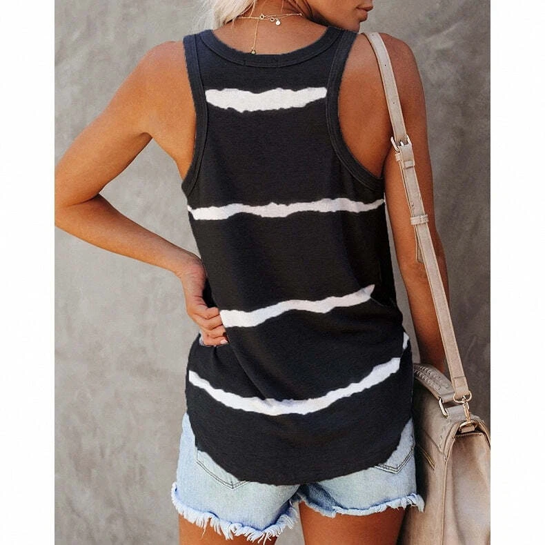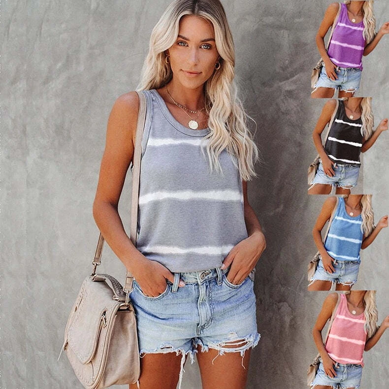 Product information: Pattern: stripes Color: pink, purple, gray, black, blue Size: S,M,L,XL,XXL,3XL Version: Loose Popular elements: Printing, stitching Style: pullover Fabric name: cotton blend Main fabric composition: Cotton Suitable age: 25-29 years old Sleeve length: sleeveless Style: European and American Process: Printing/printing and dyeing Size: Note: 1. Asian sizes are 1 to 2 sizes smaller than European and American people. Choose the larger size if your size between two sizes. Please allow 2-3cm differences due to manual measurement. 2. Please check the size chart carefully before you buy the item, if you don't know how to choose size, please contact our customer service. 3.As you know, the different computers display colors differently, the color of the actual item may vary slightly from the following images. Packing list: Short sleeved * 1 Product Image: