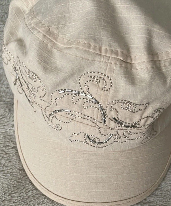 Love this hat! The cream color goes with everything, and the beaded details add just the right amount of flair. Super lightweight and comfy—perfect for sunny days, travel, or dressing up an outfit. The one-size fit is great, and the cotton fabric feels breathable. A stylish must-have for spring and summer!
