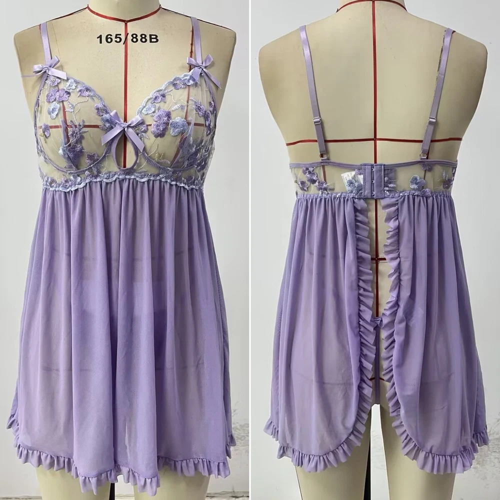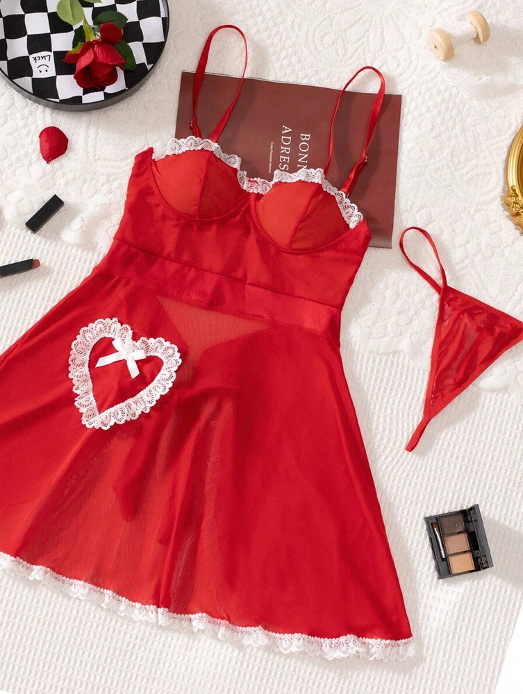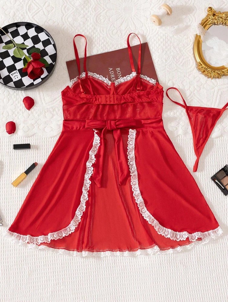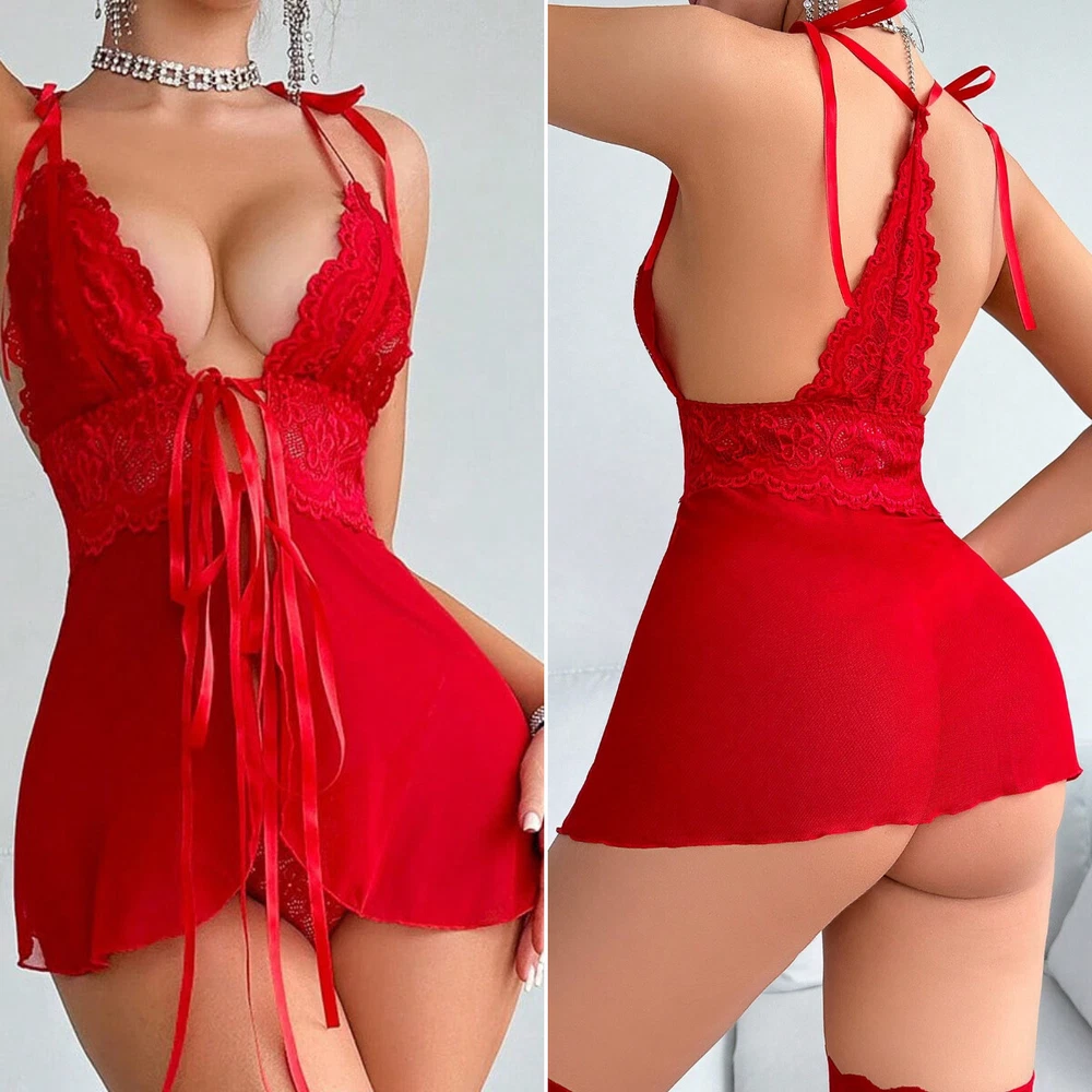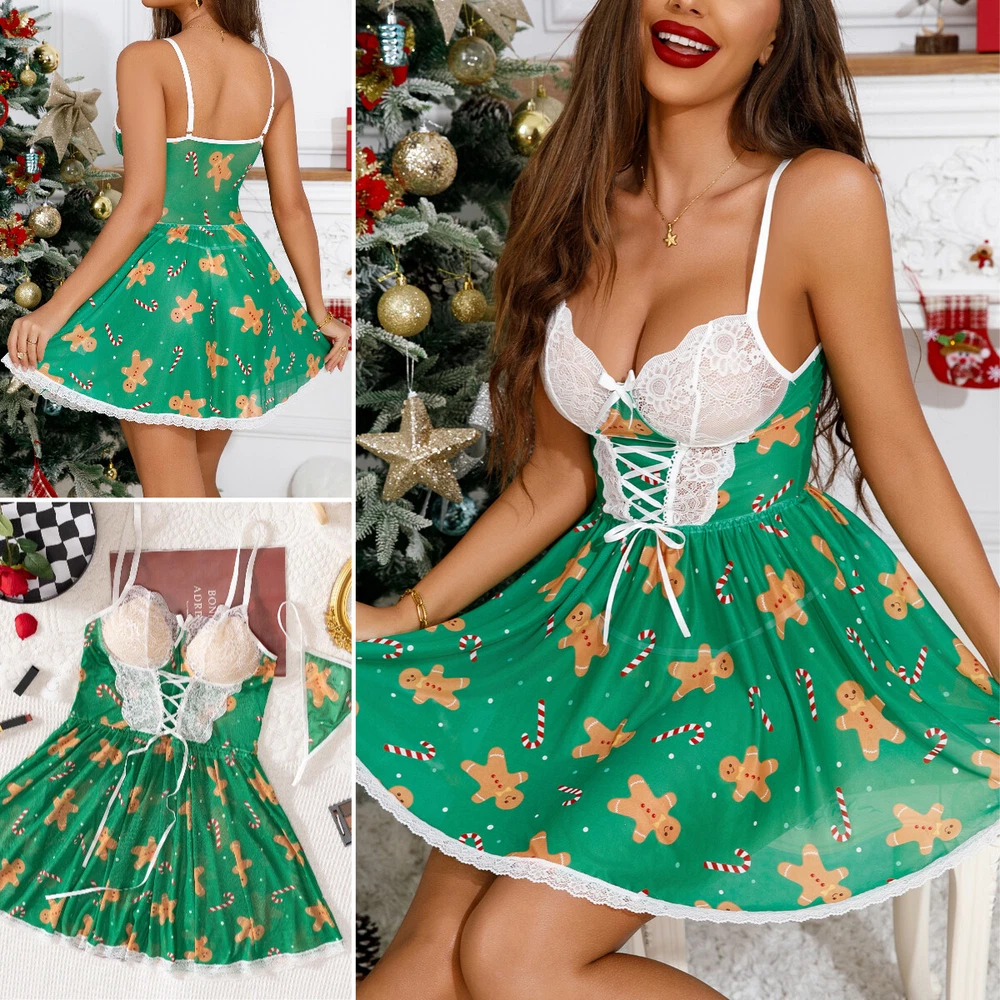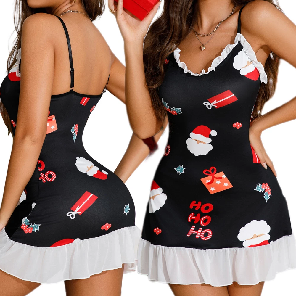 Indulge in your wildest fantasies with this stunning women's lingerie sleepwear set. This babydoll is perfect for a comfortable and relaxing night's sleep, featuring a V-neckline and adjustable straps for the perfect fit. The lightweight lace fabric provides a delicate touch, while the ruffle, strap, bow, and embroidered accents add a touch of elegance and charm. The sleepshirt is designed with a festive theme, perfect for Christmas, Halloween, Valentine's Day, or any other special occasion. The pull-over closure makes it easy to wear and take off, and the polyester and acrylic material require hand wash only for optimal care. This regular-sized sleepwear set is a perfect gift for her, whether it's for a birthday, wedding, or just to show your love and appreciation.