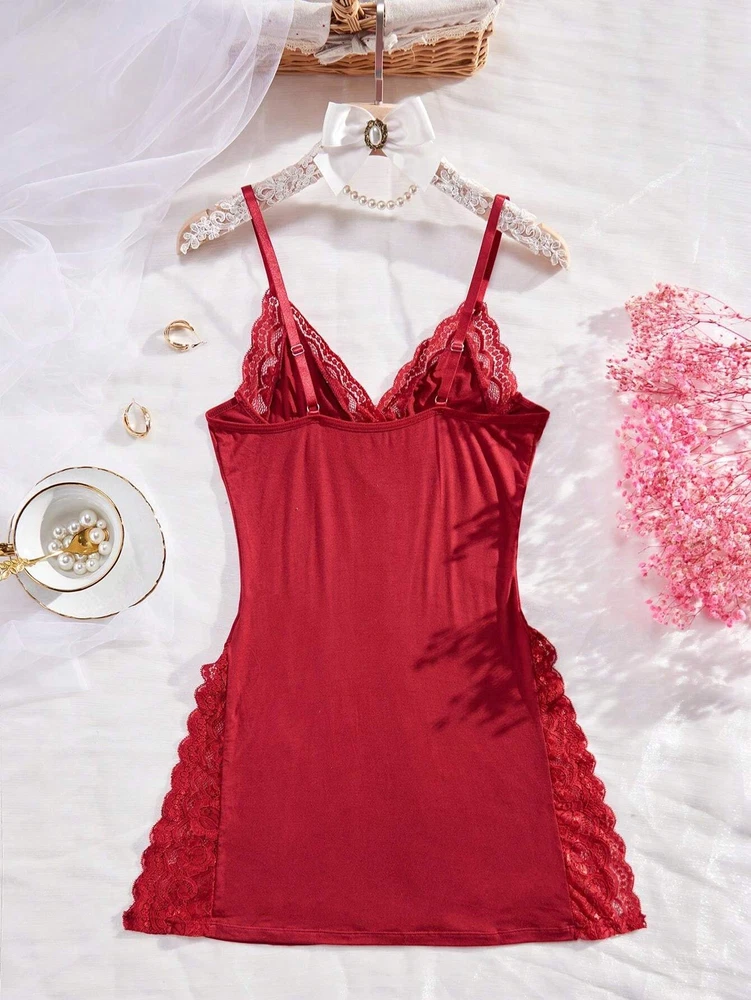 Women's Valentine's Lingerie Sexy Nightwear Strap Nightgown Babydoll Chemise US About this item: ★ Exquisite Material: The sexy nightie full slip for women is made of high-quality lace and modal, it's smooth, stretchy and lightweight very comfortable to wear for night .Soft and breathable, charming and sexy, delivering comfortable wearing experience ★Sexy Nightgown:The slim fit design can outline the charming figure curve. Sexy plunging V-neck and bust push-up for a great figure look. It is a must-have suspender underwear for clothes. ★ Unique Design:Lace chemise is design of dual side slits will perfect show your sexy leg curve.Hollowed back design makes you look very slim, sets off the shoulder and neck lines, shows your sexy butterfly bones, makes the whole back very sexy, and deeply attracts the attention of your lover ★Occasion:The modal chemise nightgown is perfect for nightwear, sleepwear, underdress slip, boudior and lounge around, and every special night you and your lover have ★ Fascinate Style: modal lingerie for women; lingerie nightgown cotton; br idal nightgown; women’s baby doll gowns; nightie for women; lingerie for sleepwear cotton; women chemise nightgown; sleepwear for women chemise cotton; lace nightgown lingerie; women full slip babydoll; baby doll sleep wear for women; nighties for women sexy