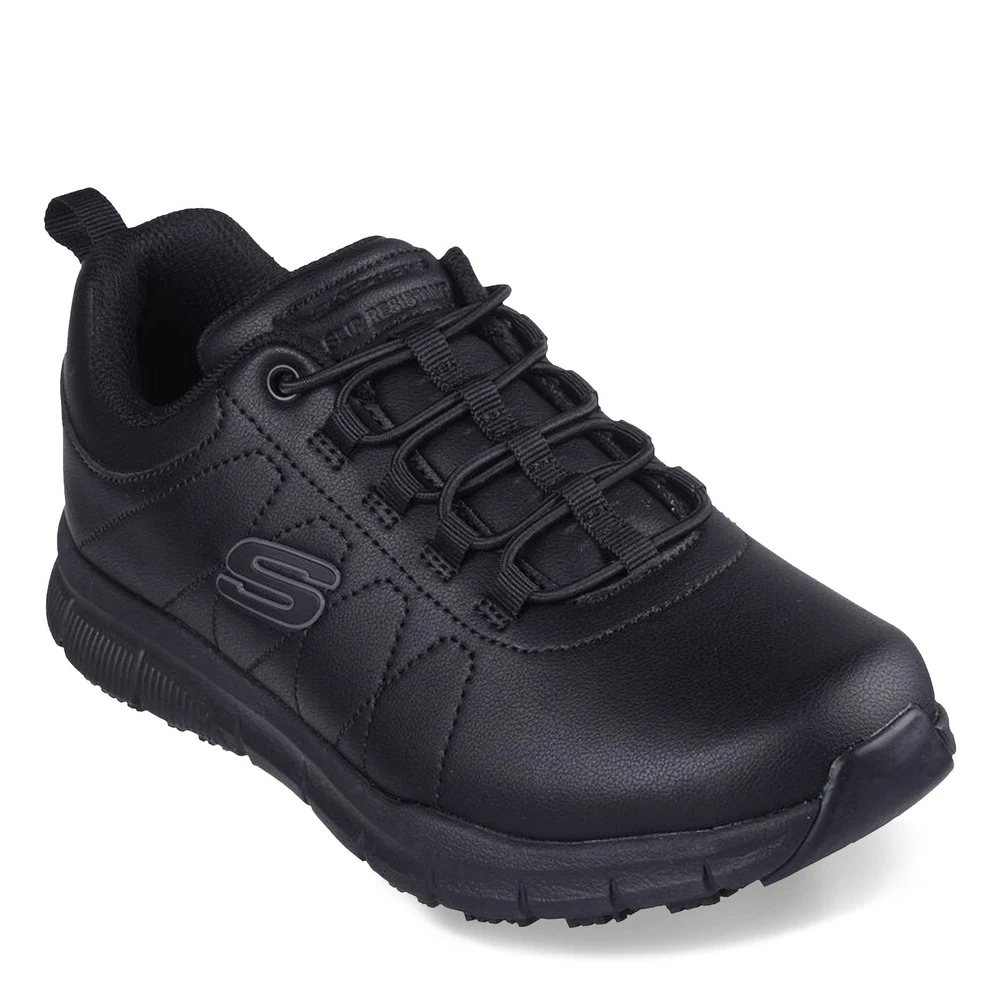 Store Name or Logo Here Our eBay Store About Us Contact Us Add to Favorite Sellers ( Women's Skechers, Work: Nampa - Beja Sneaker - Wide Width 49.95 Stay confident and comfortable on the job with Skechers Work: Nampa - Beja sneakers. Featuring a smooth synthetic upper with stretch laces, these slip-resistant shoes offer a cushioned Skechers Memory Foam insole and a shock-absorbing lightweight midsole, ensuring all-day support and safety, including Electrical Hazard (EH) protection Smooth synthetic upper Soft fabric shoe lining is moisture wicking Padded collar and tongue Slip-on fashion sneaker style with stretchy bungee laces Air cooled memory foam cushioned insole Shock-absorbing flexible lightweight midsole Electrical Hazard (EH) safe design tested ASTM-F2892 Slip-resistant traction outsole ) Product Details Color Black Height Length UPC This is the footer. More links or text can go here.