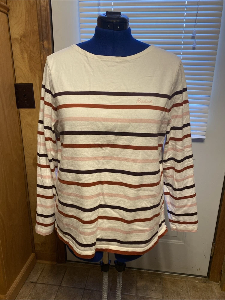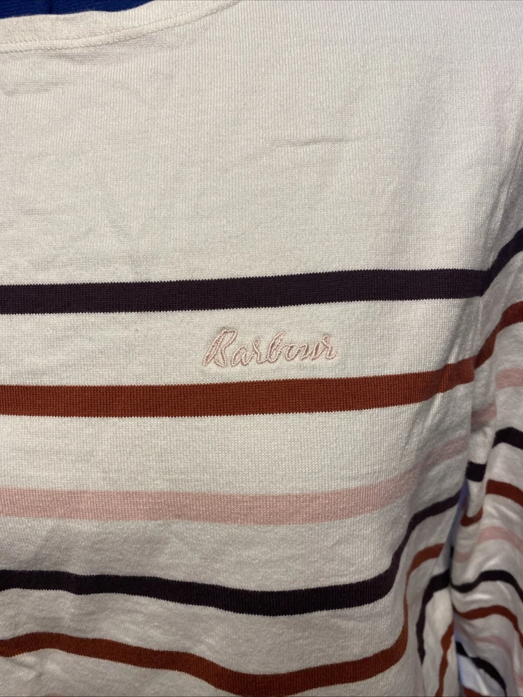 This women's sweater from Barbour is a classic piece that will never go out of style. The lightweight knit fabric makes it perfect for any season, while the striped pattern and white color add a touch of elegance to your outfit. The long sleeves and pullover style provide both comfort and ease of wear, making it a versatile addition to your wardrobe. The sweater is available in size L and is perfect for regular-sized women. Whether you're dressing up for a night out or keeping it casual, this sweater is sure to make a statement. Don't miss out on this timeless piece that's perfect for any occasion.