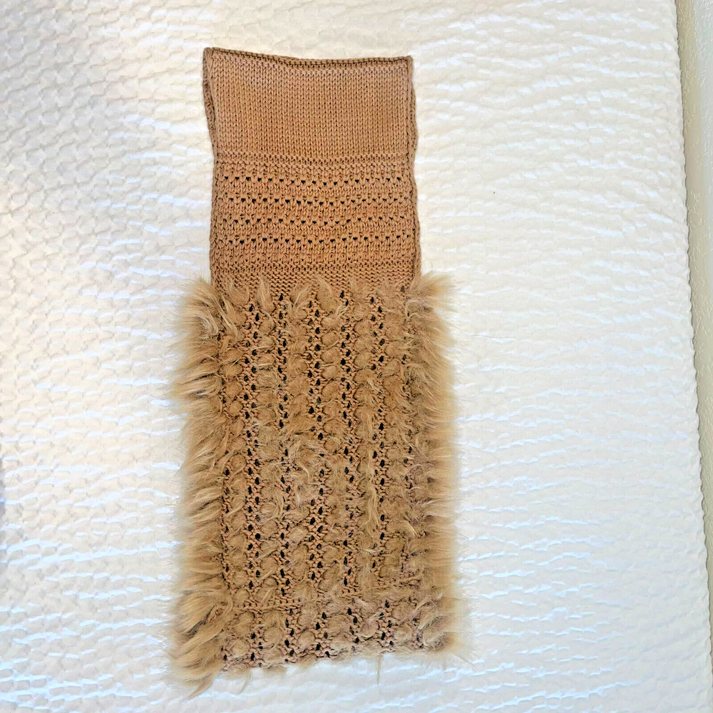 Women's Tan Fur Scarf Knitted Infinity Neck Warmer - Cozy Winter Accessories Stay warm and stylish this winter with the Women's Tan Fur Scarf Knitted Infinity Neck Warmer. This luxurious, soft scarf is crafted from high-quality materials to provide ultimate comfort and warmth. The infinity loop design allows for easy wear, offering a snug and secure fit to protect you from the cold. The chic tan fur adds a touch of sophistication, making it the perfect accessory for any casual or formal outfit. Ideal for winter outings, holidays, or as a thoughtful gift, this cozy scarf is a must-have addition to your wardrobe. Keep cozy and fashionable all season long with this essential winter accessory.