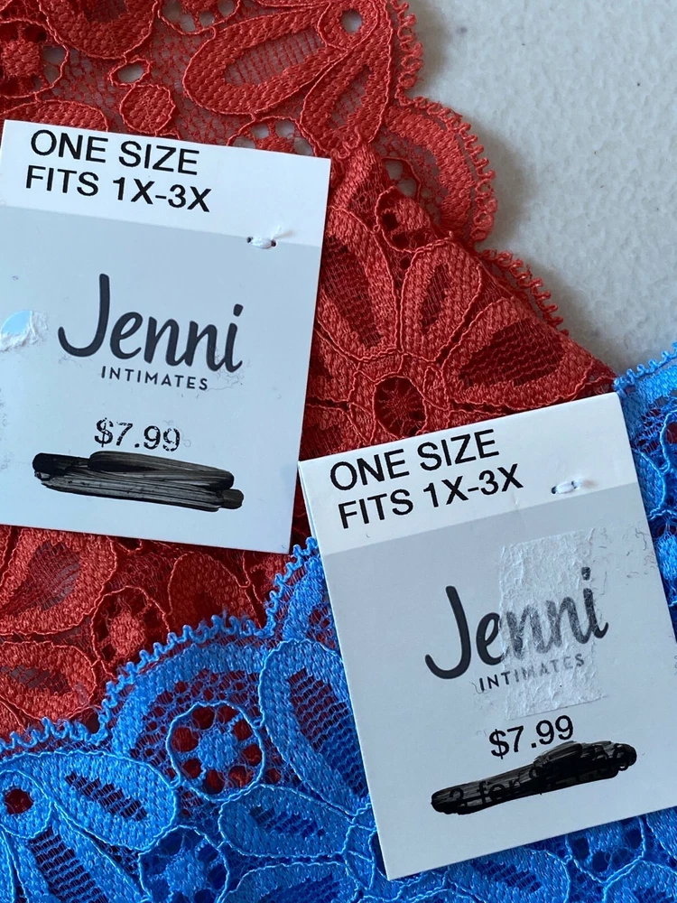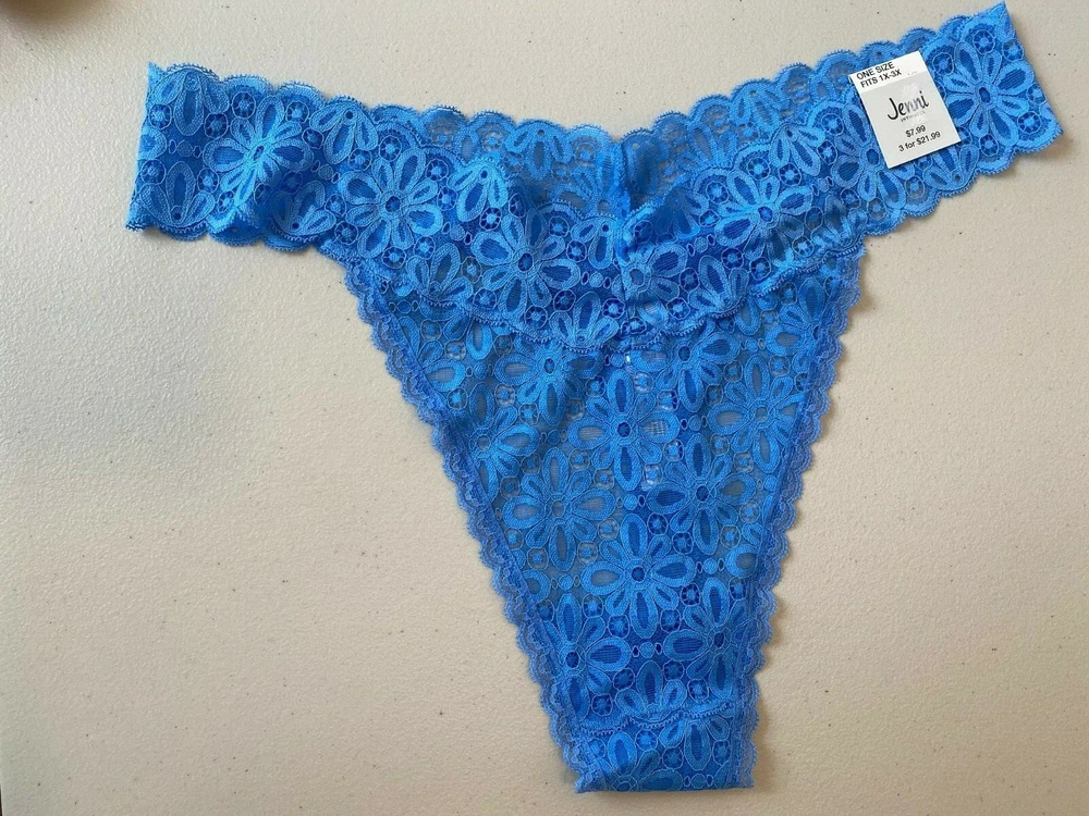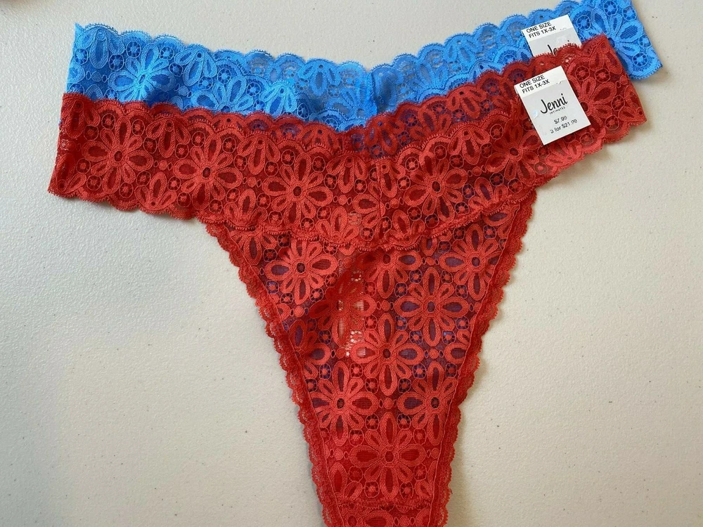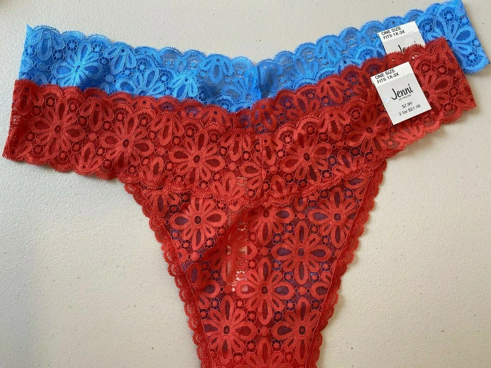 Womens Underwear One Size Fits 1X-3X Jenni Intimates 2pk Lace Thong New with tags Items are sealed after photos. We cannot check additional measurements for you, but we do have free returns You cannot combine coupons with offers See all photos for description please We store our items in a pet and smoke free environment Shipping and Return details We ship daily and have free returns. No questions asked We can combine shipping or send a partial shipping refund We mail our items with tracking number for confirmation