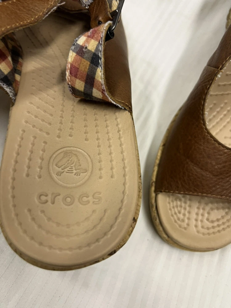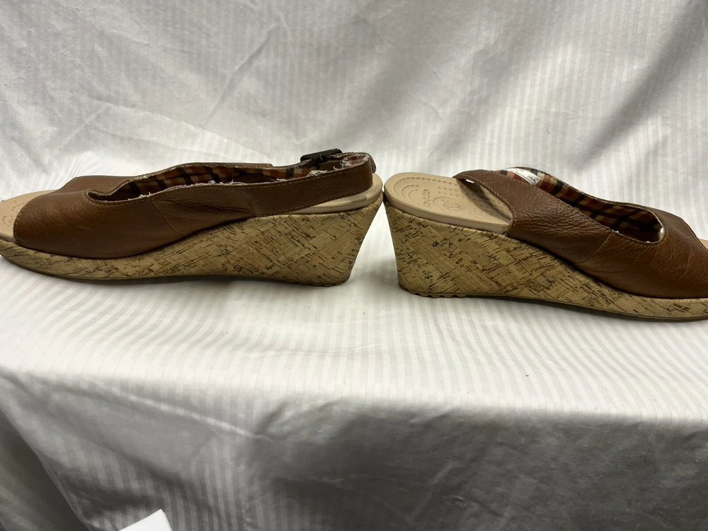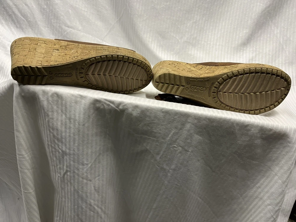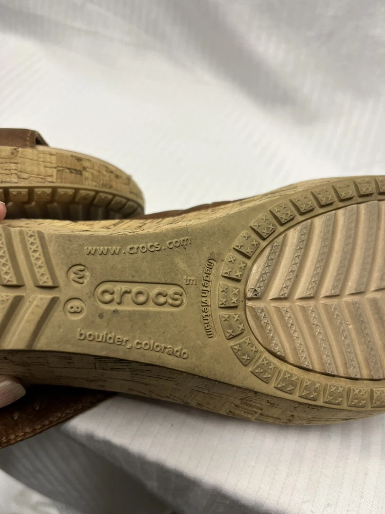 Women’s brown croc wedge sandal size 8W great pr e owned condition. Let me know if you have any questions . Thanks for looking.