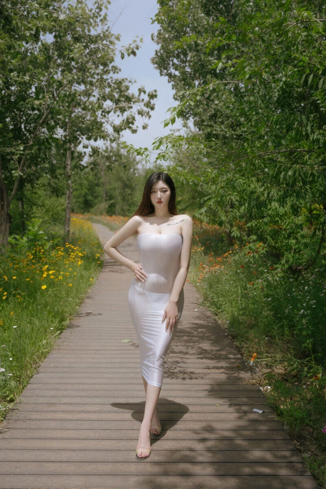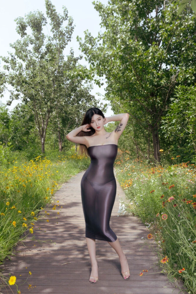 Women's Wet Look Satin Shaping Bodycon Long Skirt Buttocks Sheer Cocktail Dress