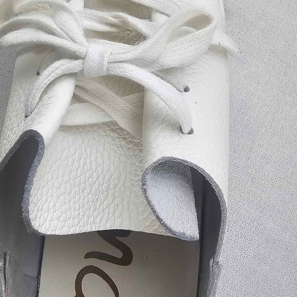 Elevate your shoe game with these stylish white leather sneakers by Sam Edelman. Featuring a round toe and lace-up closure, these sneakers are perfect for any casual occasion, from walking to school to outdoor activities. The flat heel with a cushioned insole provides ultimate comfort, while the rubber outsole ensures durability. These sneakers are not only functional but also fashionable, with a modern design that includes a logo accent and a solid pattern. They are suitable for all seasons, whether it's winter, summer, fall, or spring. These Sam Edelman sneakers are available in size 7 and are a must-have for any woman's shoe collection.