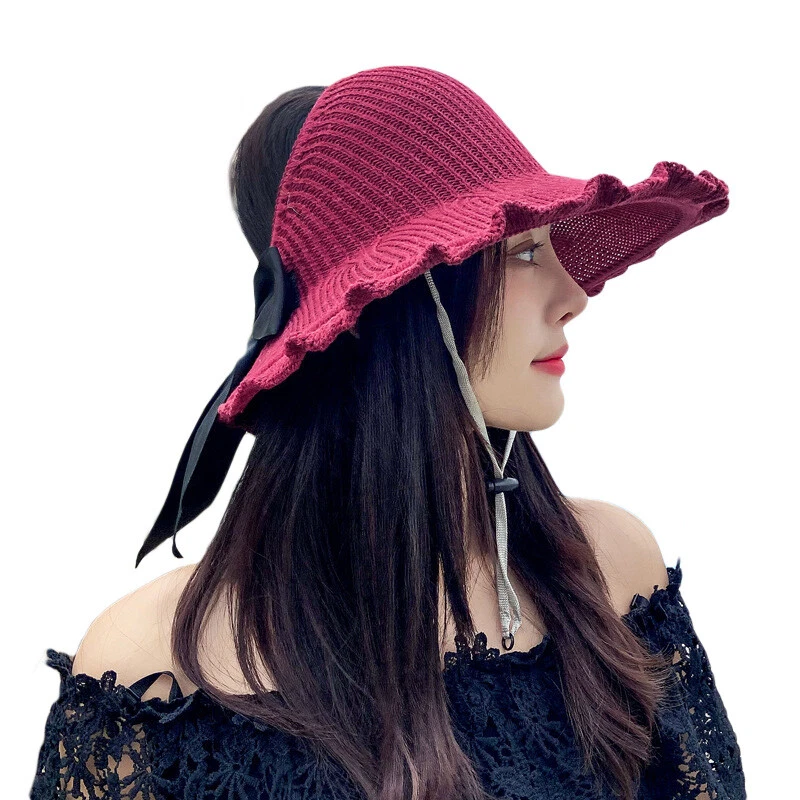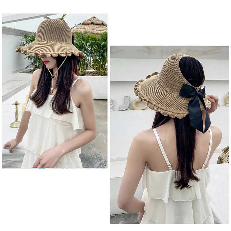 Women's Wide Brim Sun Visor Hat UV Protection Foldable Beach Cap