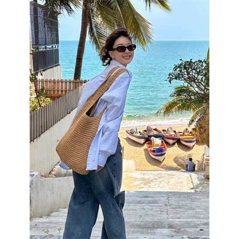 Feature: 1. Material: Made of high-quality woven fabric, it is not only soft, comfortable, durable, but also very easy to take care of. 2. Size: about 42x32cm/16.54x12.6in, which can easily accommodate your tablet, mobile phone, keys, wallet, lipstick, cosmetics and other items and accessories. 3. Structure: large pocket for storage and convenient carrying. 4. Gift: It is a good choice for shopping, holiday parties and travel street photography. Specifications: Shape: Casual Tote Main Material: woven Lining Material: Polyester Style: Fashion Closure Type: zipper Size: about 42x32cm/16.54x12.6in Color: Khaki, Beige Purpose: single shoulder, portable Note: 1. Due to the different monitor and light effect, the actual color of the item might be slightly different from the color showed on the pictures. Thank you! 2. Please allow 1-3cm measuring deviation due to manual measurement. Package includes: 1pc* bag