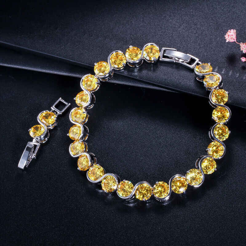 Luxury Holiday Xmas Jewelry Yellow Citrine Gems Women Girls Silver CZ Bracelet Specifications : 1. Condition: New 2. Material : Cubic Zirconia 3. Bracelet Length :17.6 cm or 20.6 cm 4.Metal Color : Silver Plated Features : 1. Cubic Zirconia High Quality Material - Diamond-like Brilliance , Prong Setting and CZ Stone are stable. 2. It will be an ideal gift for your girlfriend, wife, fiancee, daughter, mother, your special someone, or just yourself. 3. Perfect for many Occasion: Daily wear , Shopping , Anniversary , Party ,Wedding , Prom, etc. Package Includes: 1Pc Bracelet Payment Delivery details Terms of sales & Feedbacks About us & Contact us Our commitment Payment 1. We only ship item to your Ebay verified address . Please Make sure all address are the same 2.Please leave note in ebay when making the payment if you have any special request (colors/size). Delivery details We only send items to the registered eBay address.Items will be shipped within 2 business days from the date payment is received (not include public holiday and weekend) . As per eBay regulations, import duties, taxes, and customs charges are the buyer's responsibility. Please check with your country's customs office to determine what these additional costs may be prior to bidding or buying. Terms of sales & Feedbacks After-Sale Please contact us to request a return/replace/refund authorization .It will be best if you use ebay message to contact me. 1, Return and replacement request is available only the requests within 30 days after parcel received. 2, Returning the item as the same condition as received. Situation and solution Defectives ---Please contact us and provide a photo of the defective part. After situation confirmed,we will offer you refund/return/replacement according to the situation Not as Described ---Please contact us and provide a photo of the wrong part. After situation confirmed,we will offer you refund/return/replacement according to the situation Not Received ---Please undersatnding shipping on the way was out of our control ,because of the busy shipping season,holidays,bad weather or force majeure etc. It may be delay for days. But if it took too much time and not deliveried, Please message me, I will offer you solution for it. Feedbacks 1. If you are satisfied with our service, please leave us a + Good feedback and rate the details of the transaction (DSR) with a. . When you rate the shipping time part please take international transit into consideration.] Your recognition will make us more confident to develop business and serve you better. 2. Please contact us first if you have any problem with the items,we will solve it in time ! 3. Please do not leave Neutral or Negative Feedback before you contact us, Thanks For Your Business ! About us & Contact us Working time: Chinese time(Eastern eight zones):Monday to Friday ,9:00 am to 6:00 pm. We do not work on chinese legal holiday. Message reply: We will reply all messages within 24 hours of business time. Please contact us via ebay message, it was the best way for both you and us to solve problems. Any questions or anything you need, please feel free to contact us. Our commitment 1.Wholesale price will be offered to you if you need in bulk ! 2.About Size