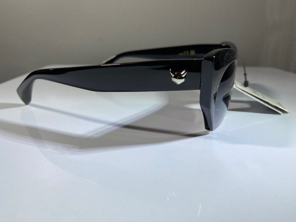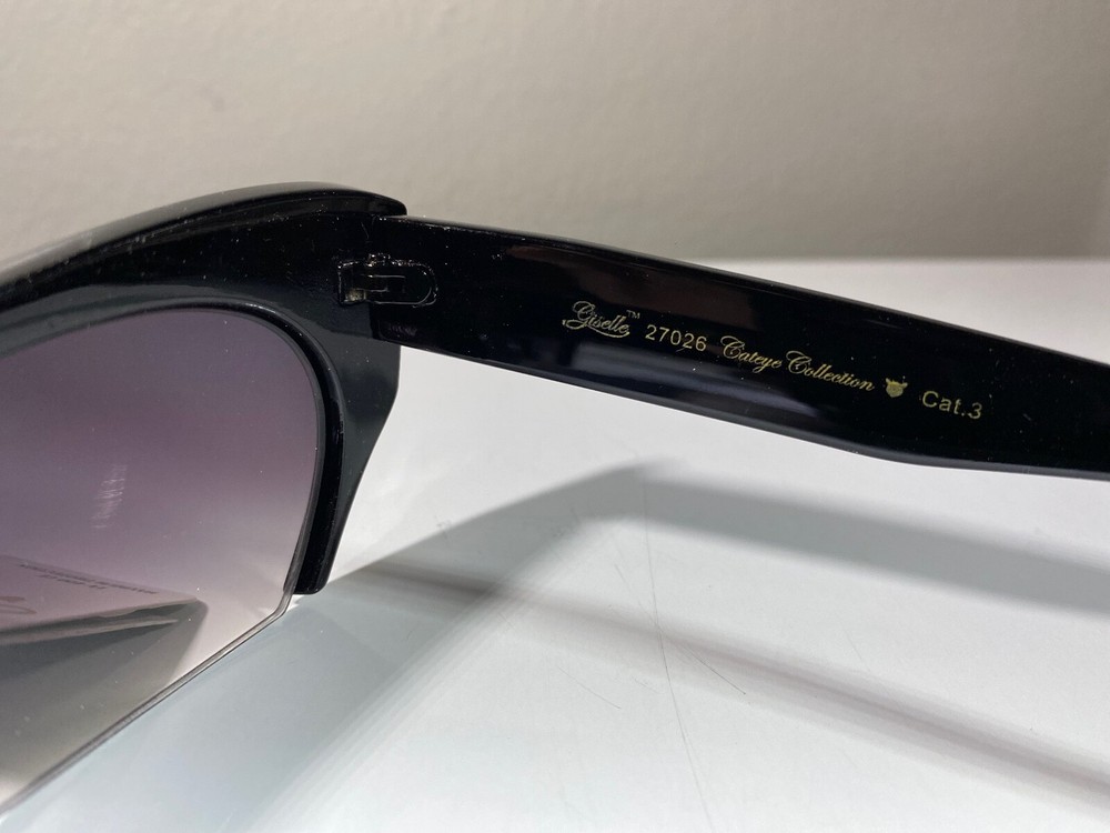 Women's cat eye style sunglasses with black frame and purple lenses. Great price.