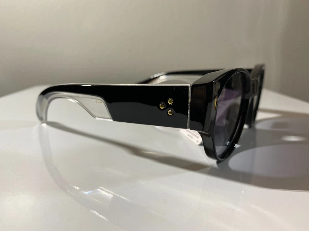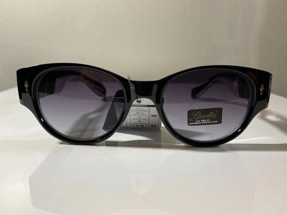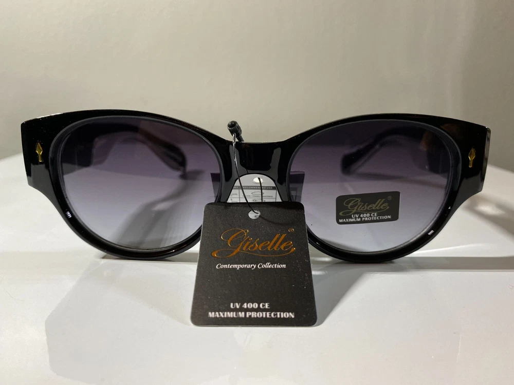 Women's cat eye style sunglasses with black frame and purple lenses. Great price.