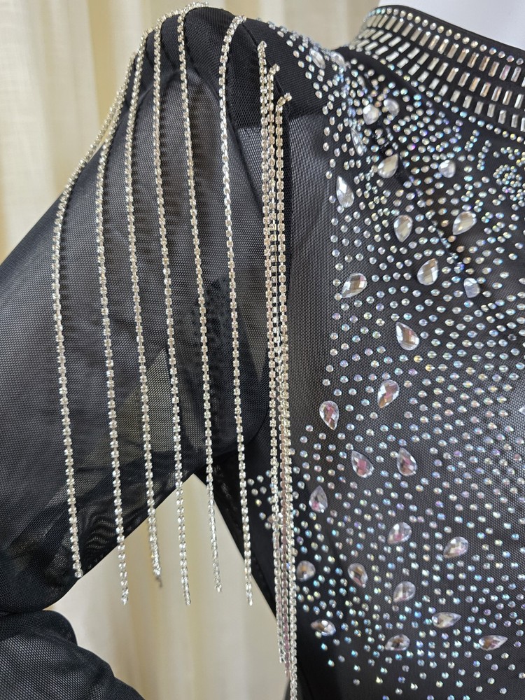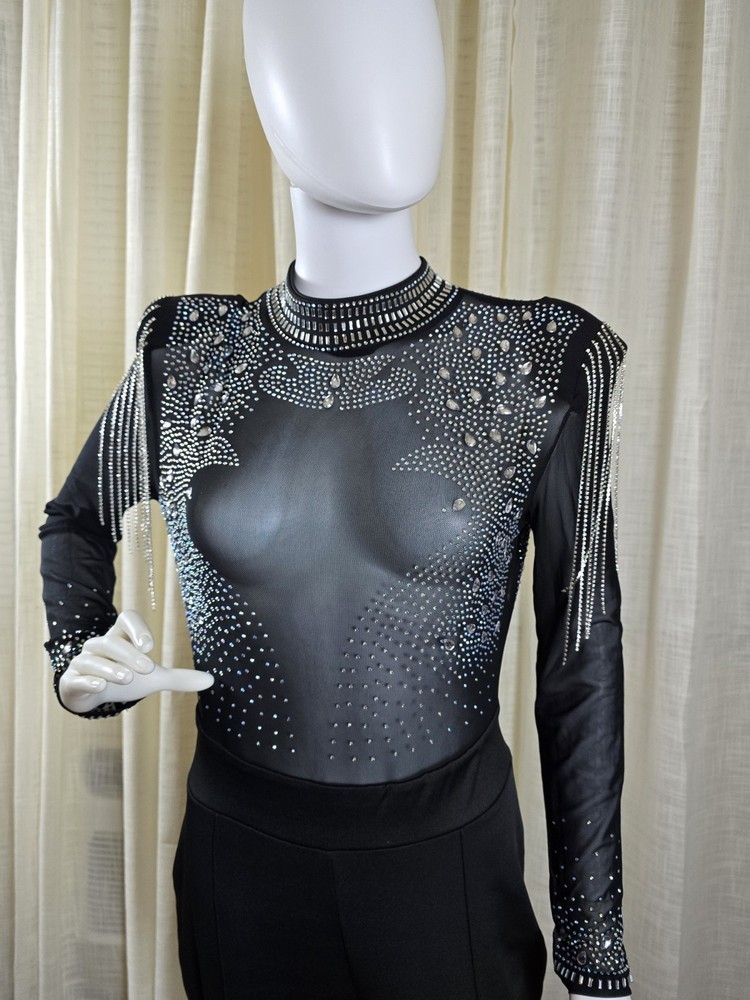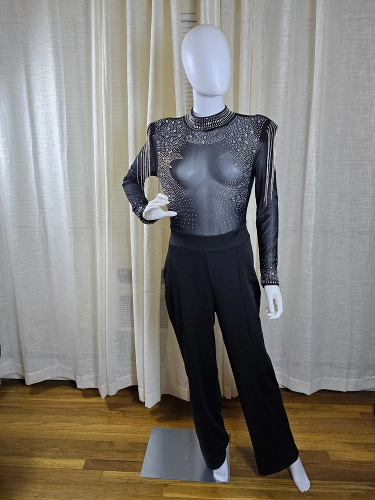 Womens long sleeve Mesh Rhinestone Black jumpsuit Size XL. Shipped with USPS Ground Advantage.