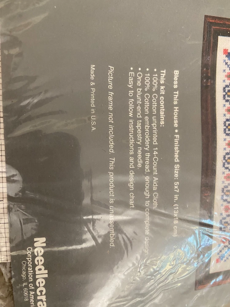 Wonder Art Counted Cross Stitch Kit #5519 Bless this House Made in USA 5x7” Vtg.