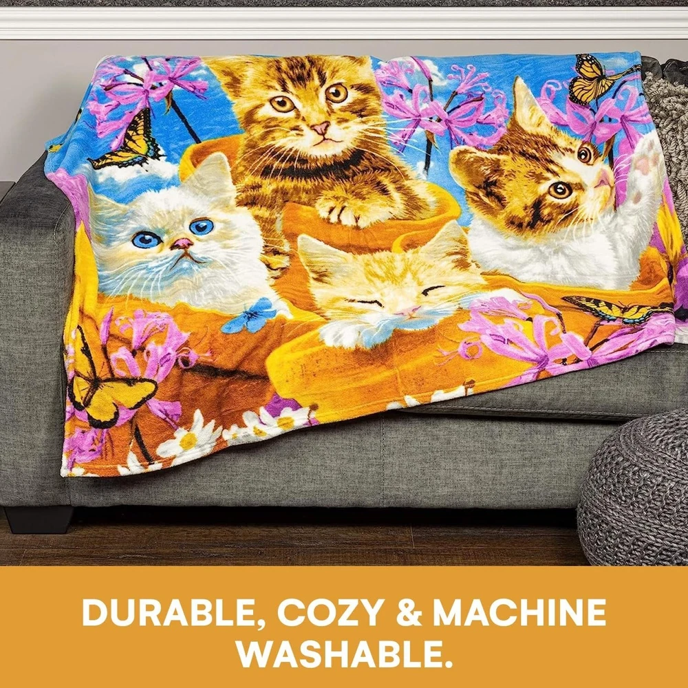 Wonder Kitten Fleece Blanket for Bed Queen Size Cat Fleece Throw Blanket for Bed Color:Garden Wonder Kittens Size:50" x 60" Material: Polyester Special Feature tear_resistant Style Modern Soft and Cozy Cat Blanket: Wrap yourself in warmth with this plush kitten blanket; crafted from soft fleece to offer ultimate comfort; suitable for cozy nights, essential for cat lovers Durable Polyester Material: Made from 100% polyester, this cat throw blanket measures 50 x 60 inches; machine washable for easy care; designed to retain softness and color through countless washes Vibrant Kitten Design: Printed with bright colors, these kitten blankets add a unique touch to your home; an adorable piece for cat lovers that enhances any decor with a playful kitten charm Versatile for Any Setting: Use this cat fleece blanket as an indoor or outdoor throw or cozy home accessory; ideal for chilly evenings on the couch, bed, or even on the go, adding warmth anywhere Thoughtful Gift for Cat Lovers: An ideal holiday gift for anyone who adores cats; cozy material and charming design make it a delightful choice for cat-themed decor and a lovely present for all ages Return Policy: We offer a 30 day return policy from the receiving date. Please contact us for a Free Return Label. Please use our return label so it will go back to our supplier and we can do a refund or replacement afterwards. Feedback: Your satisfaction is very important to us! If you have any problem with your order, please contact us and we will do our very best to make you satisfied. As long as you are happy with your purchase, please leave a positive feedback for us. We will always leave you a positive feedback in return. If you have any problem with your purchase, please do not leave a negative feedback. Please Contact us ... and your issue will be solved quickly and positively We are a small family-owned business trying to make a living, not a huge company that does not care ... We will ALWAYS do our best for you!
