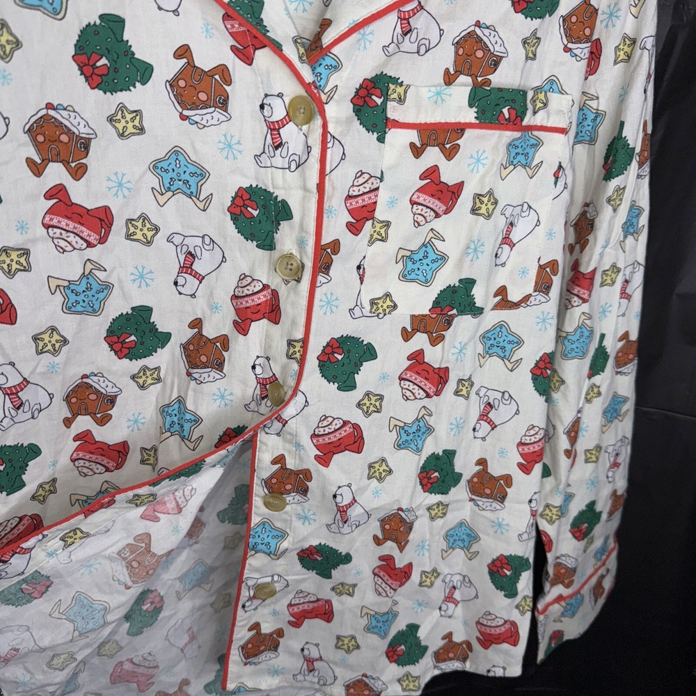 Get cozy in this adorable Polar Bear Long Sleeve Pajama Top from Wondershop. Made from 100% cotton, this comfortable top is perfect for a good night's sleep or a relaxing evening at home. The cute gingerbread house design adds a touch of festive fun to your sleepwear collection. This pajama top is designed for women and features a long sleeve design for added warmth. The top is brand new and in excellent shape, ready to be added to your wardrobe. Get ready to drift off into a sweet dream with this cozy and stylish pajama top.